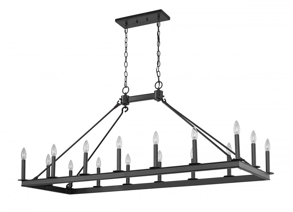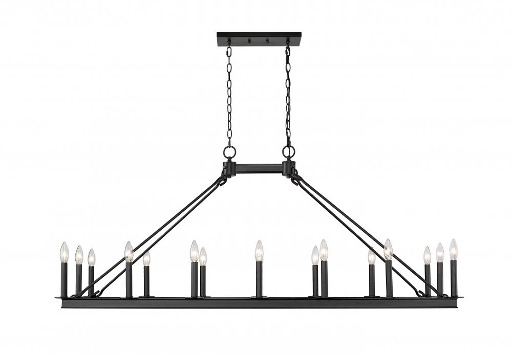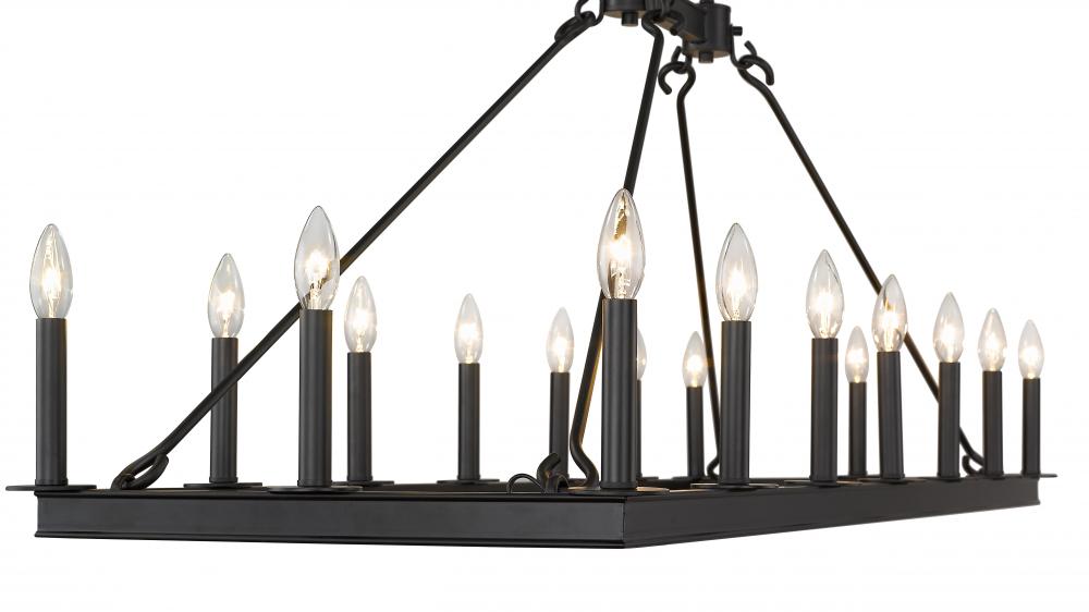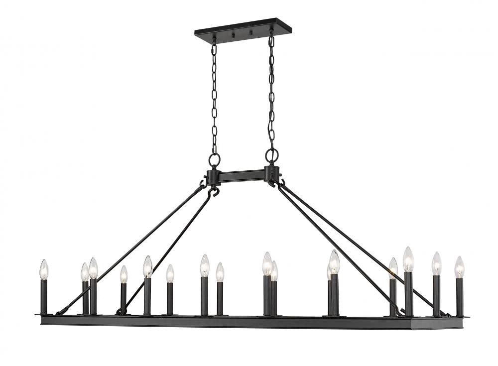 This magnificent sixteen-light island/billiard light makes a jaw-dropping impression. Its crafted in a classic matte black finish and features the candle-inspired lights in a handsome rectangular design. Its the ideal light for the dining room, foyer, kitchen, or entertainment room.
