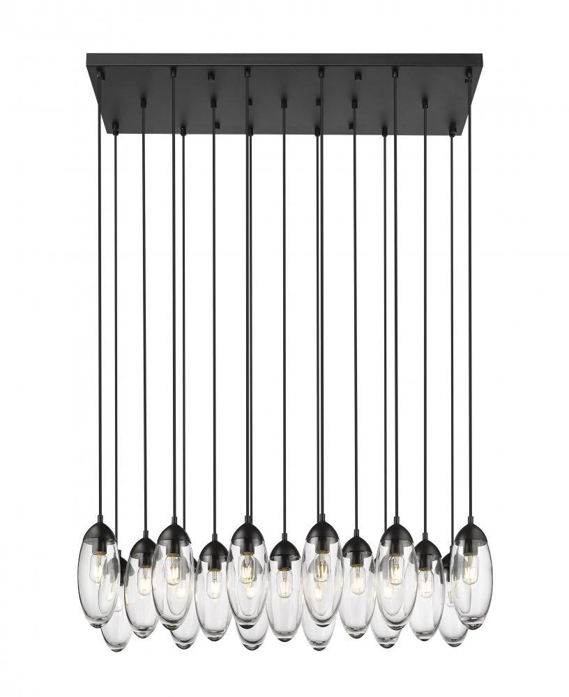 Sensibility and artistry intersect with glam influence as this exquisite 17-light chandelier highlights an island space or dining area. A sense of organic decadence follows dangling oval glass shades in an orderly cluster that delivers simplicity for a calming effect. Choose this chandelier featuring sparkling glass and bold matte black finish metal, an enticing blend created for impact.
