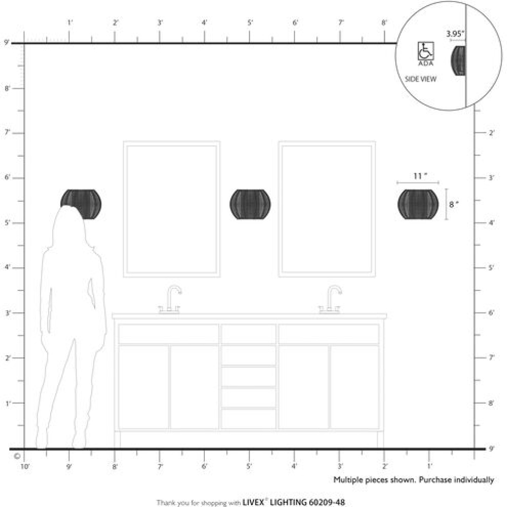 Livex Lighting 60200-48 - 1 Light Antique Gold Leaf ADA Sconce