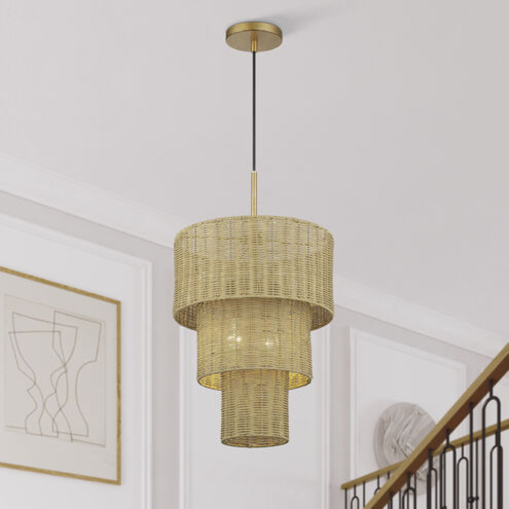 Livex Lighting 60044-48 - 4 Light Antique Gold Leaf Pendant Chandelier