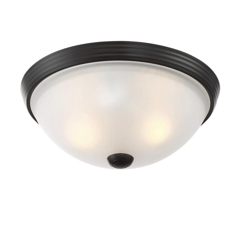 Use this versatile Savoy House 2-light ceiling flush mount to better illuminate any space. Its white etched glass shade ensures bright, comfortable light. English bronze finish. Flush mounts can be used on the ceiling of pretty much any interior room, including foyers, hallways, stairways, closets, bathrooms, bedrooms, kitchens and more! Bulbs not included. The English bronze finish can be paired with bronze hardware or mixed with hardware in other finishes. This is a terrific ceiling lighting option for any style of room. When you choose a Savoy House lighting fixture, you can be certain you've selected a piece that will withstand the test of time.