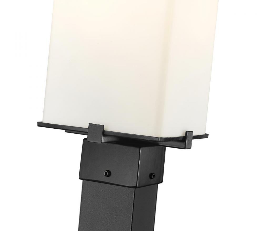A charmingly simple two-light outdoor post mounted fixture made from steel boasts a black finish and a rectangular silhouette. With a white opal shade with coastal and contemporary styling, making an eye-catching addition to any porch or patio.