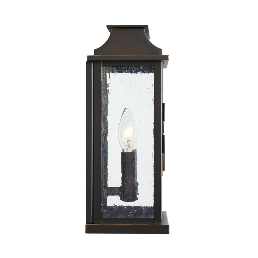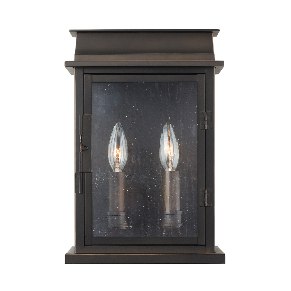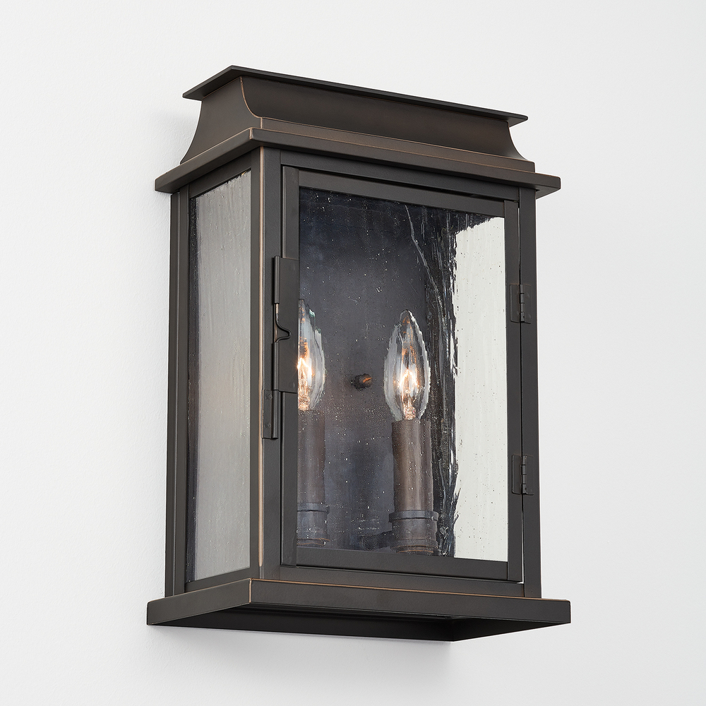Perfect on a porch or by an entry, our Bolton 2-light medium wall lantern is styled to resemble an English pocket lantern in our timeless Old Bronze finish. With two candle-style lights, antique glass adds the finishing touch with a bit of texture.