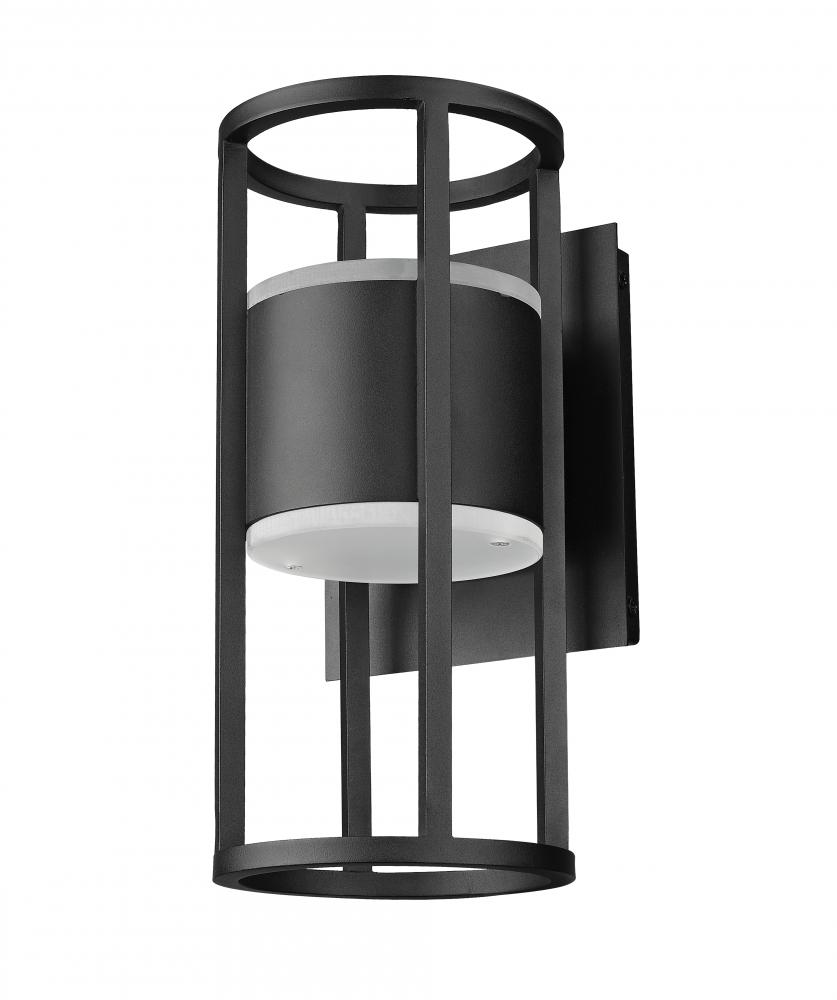 An eye-catching design blueprint brings energy and industrial style to complement a chic exterior space. This two-light outdoor wall sconce from the Luca series offers an openwork cylinder frame and wall plate featuring black aluminum with an etched glass diffuser. LED lighting offers energy efficiency to embellish its value.