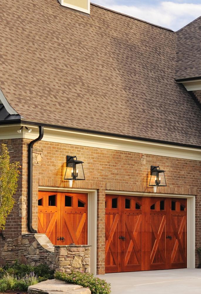 Defying convention, the Broughton series of outdoor lanterns is a well orchestrated craftsmen design with transitional elements. Beveled glass and a decorative loop on the lantern tops are crowning touches, along with stepped design on the top for added di