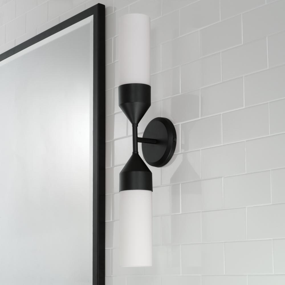 Undeniably sleek, the Devon 2-Light Sconce delivers elegant style. The slim, cylindrical Soft White glass shades create an elongated design, while the Matte Brass finish evokes a bold aesthetic.