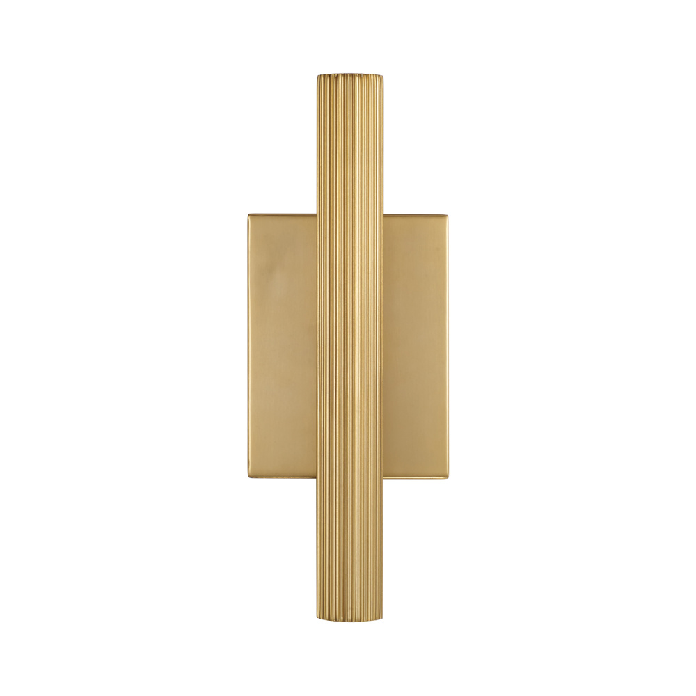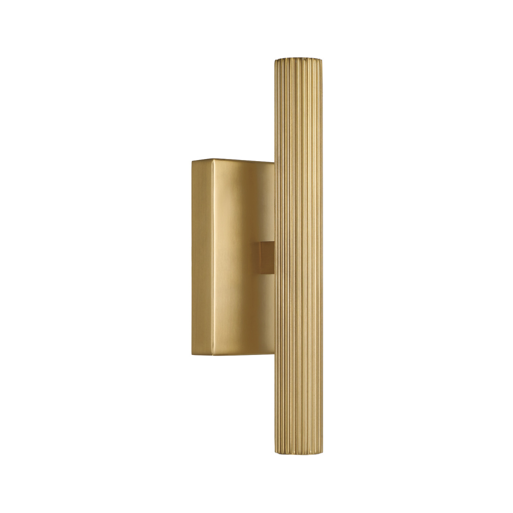 DETAILS: The fine, fluted texture brings dimension to the sleek, cylindrical form, complete with integrated LED technology for beautiful, functional task lighting in an Aged Brass finish.