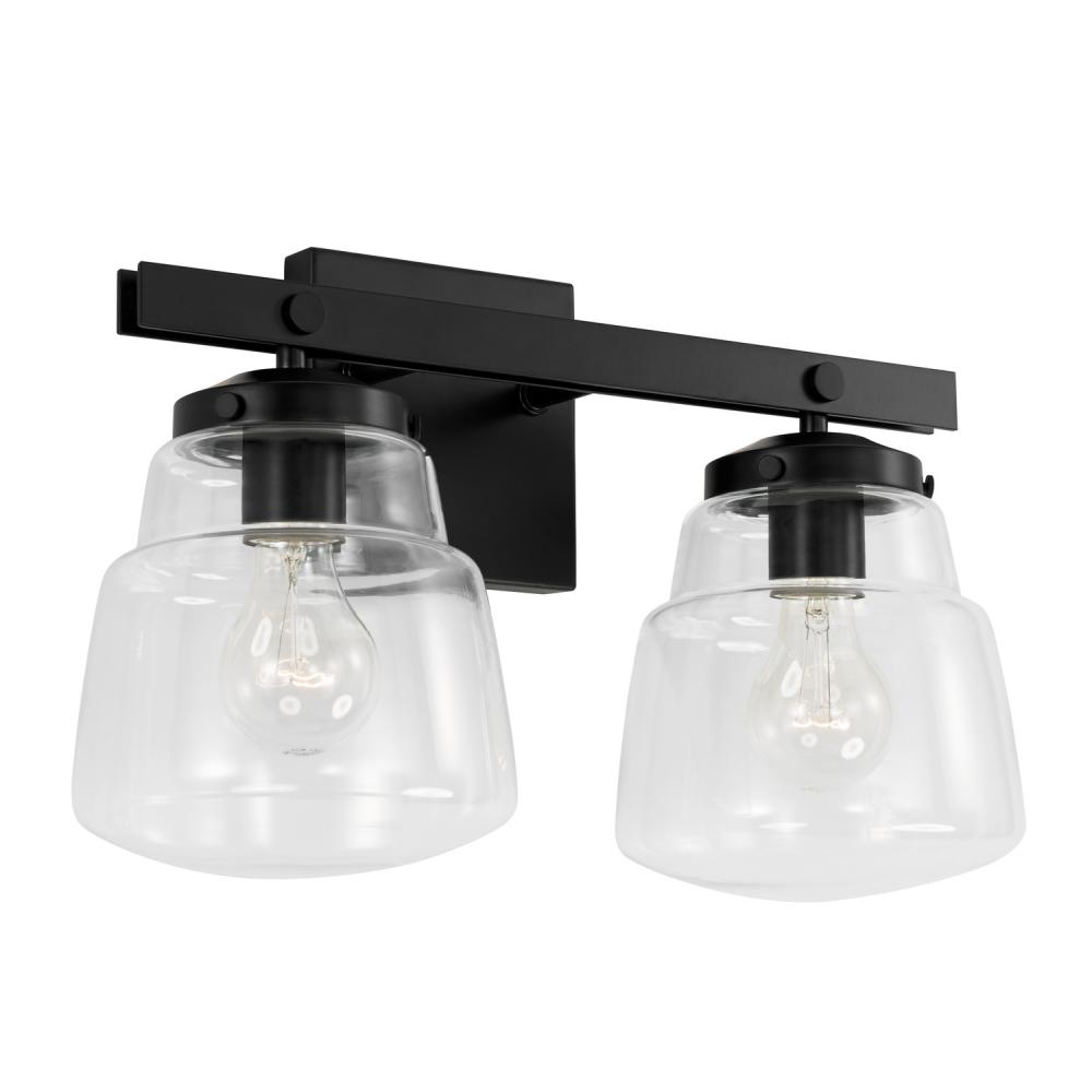 With a fresh spin on diner-inspired glass, the Dillon 2-Light Vanity brings a refined retro vibe to any space. The Matte Black finish accents the pronounced rivet details and sculptural silhouette.