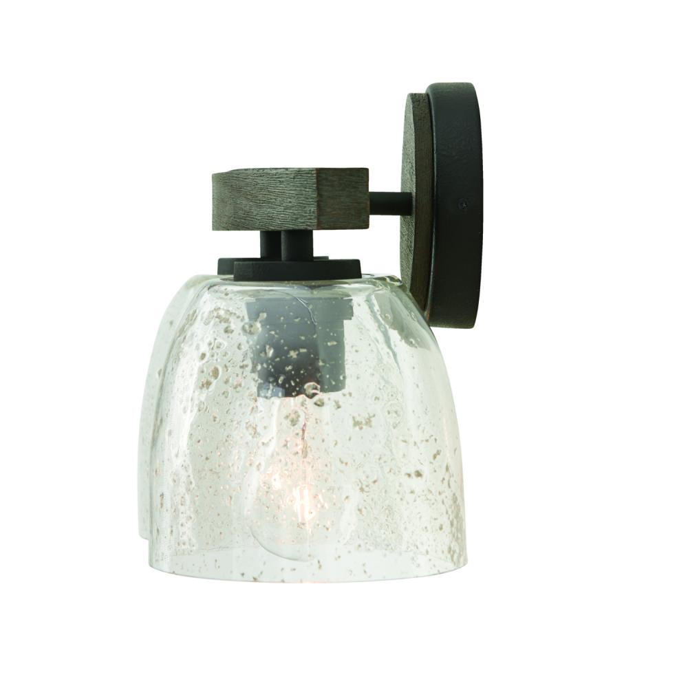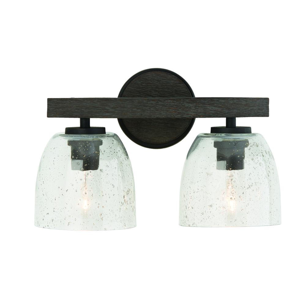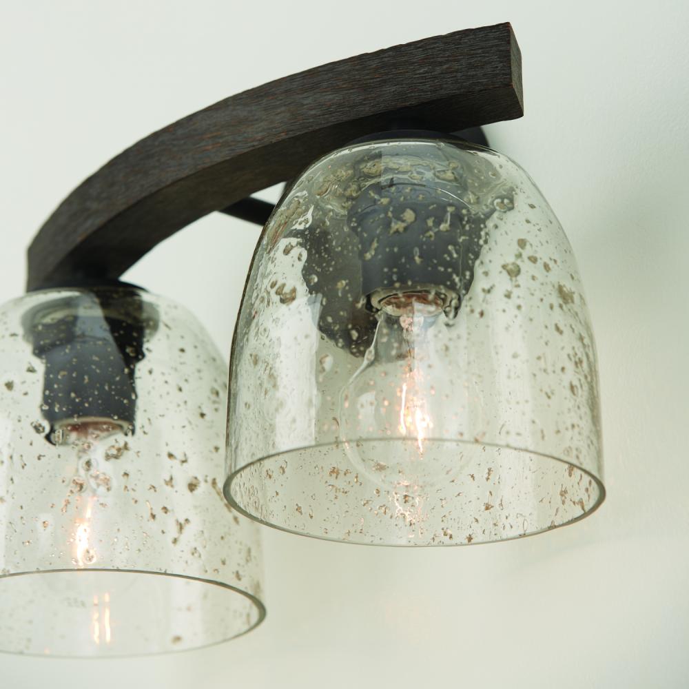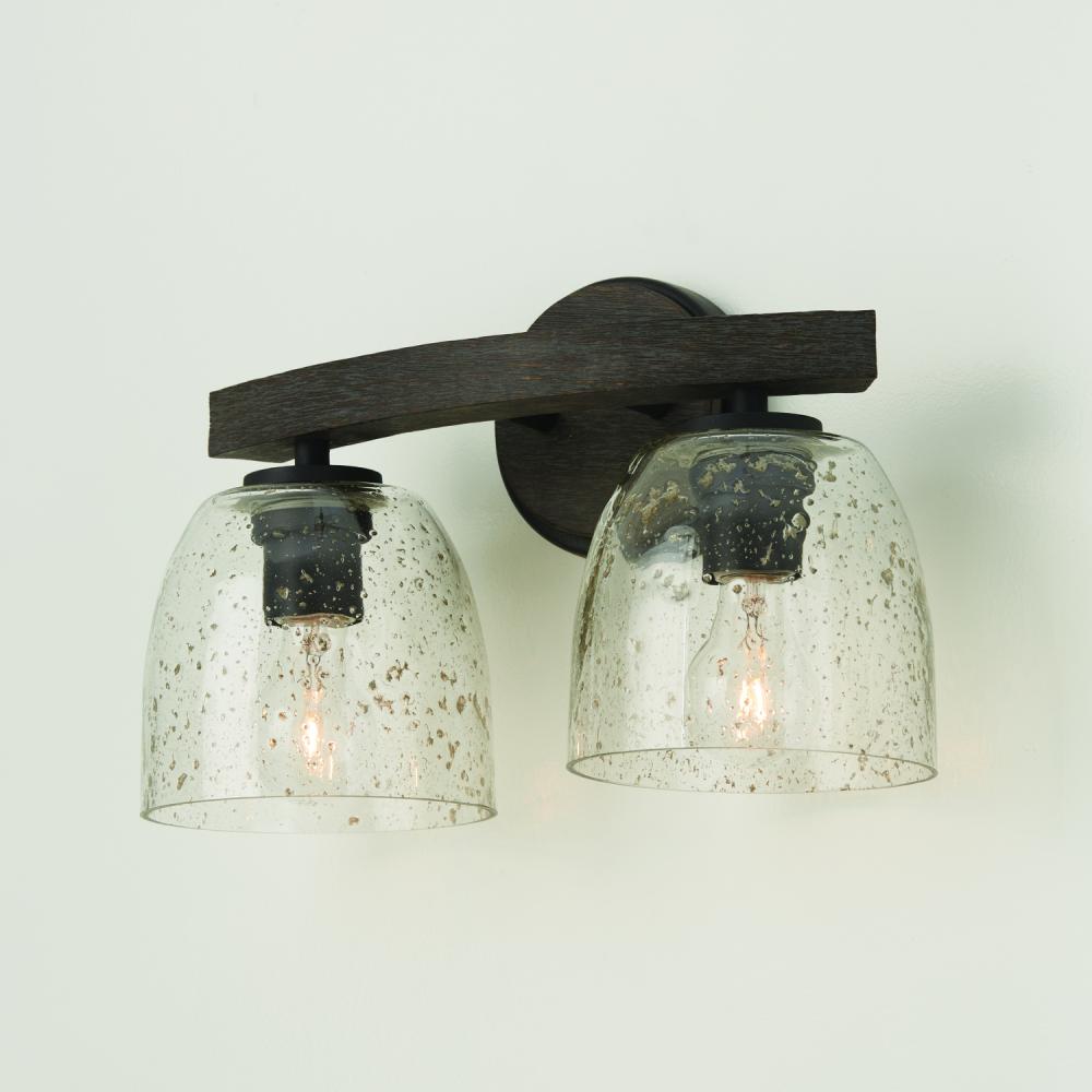 15.5"W x 9.5"H 2-Light Vanity in Carbon Grey and Black Iron with Stone Seeded Glass Handcrafted of Wire-Brushed Mango Wood