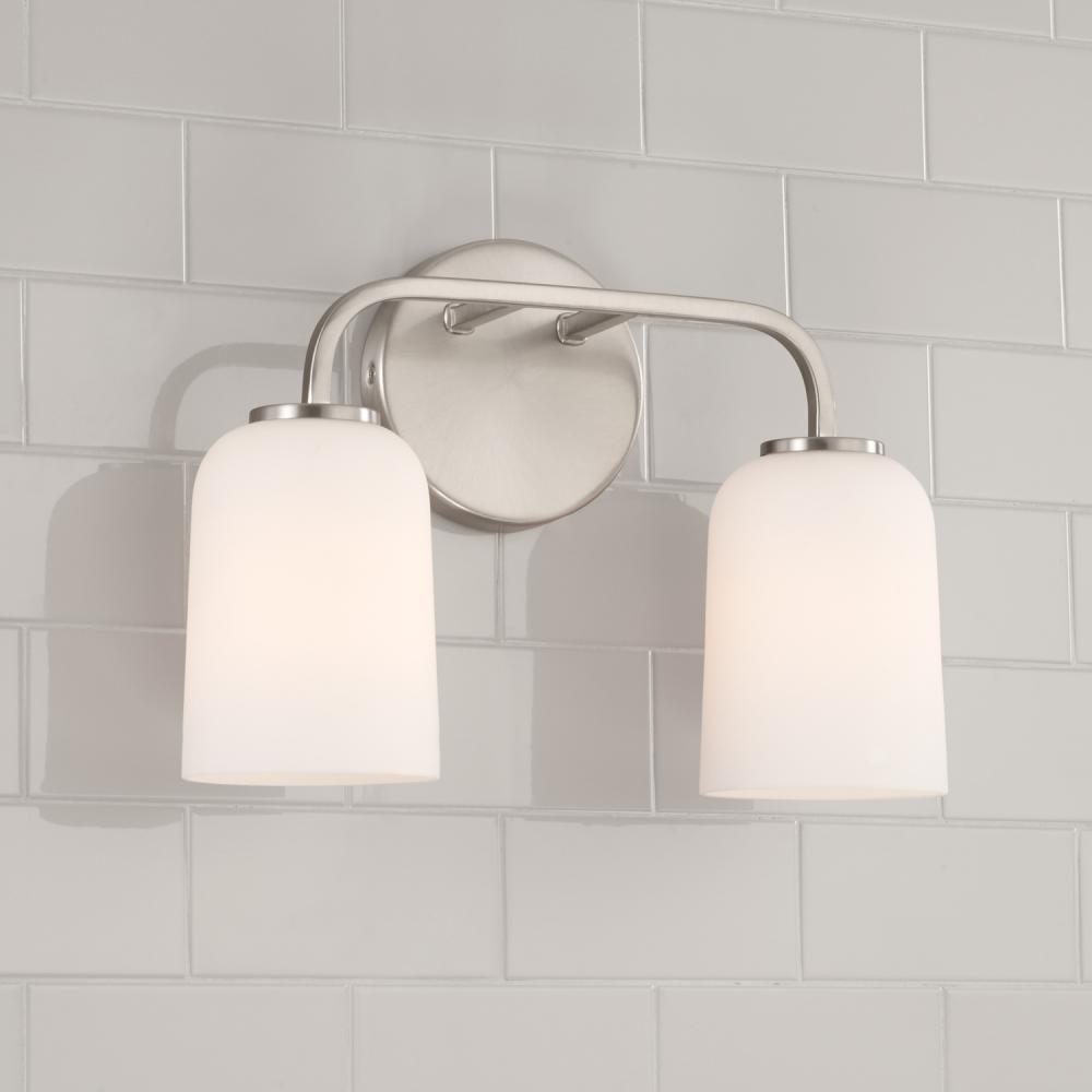 13.75"W x 9.75"H 2-Light Vanity in Brushed Nickel with Soft White Glass