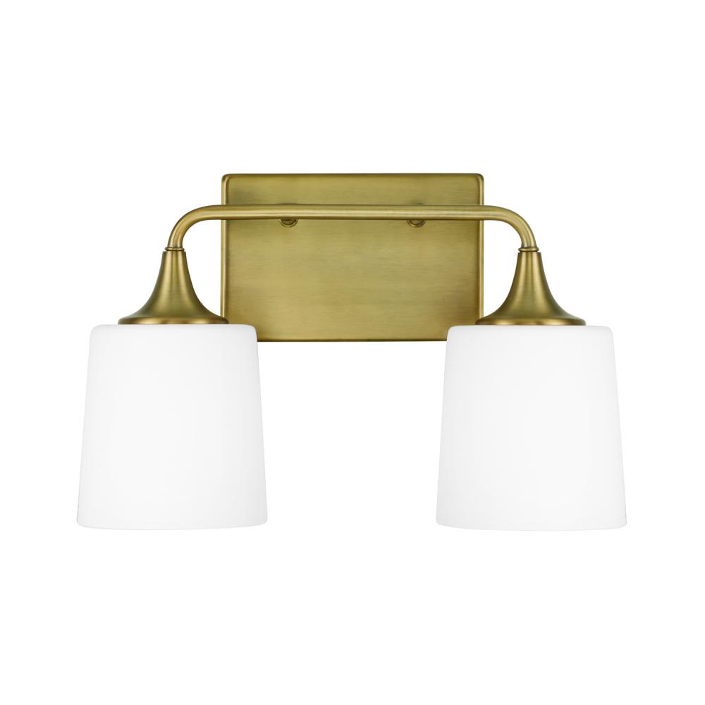 16"W x 10.25"H 2-Light Vanity in Aged Brass with Soft White Glass