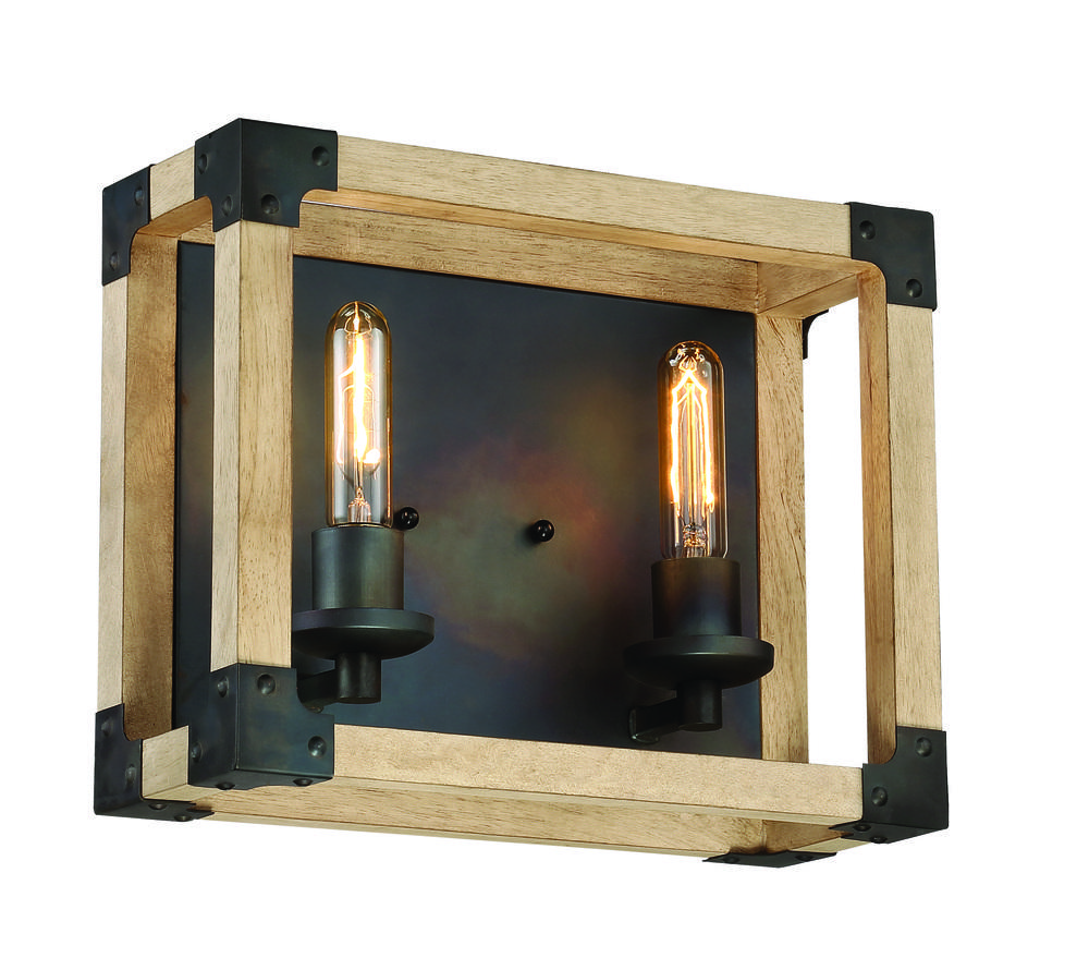 Cubic 2 Light Vanity in Fired Steel/Natural Wood
