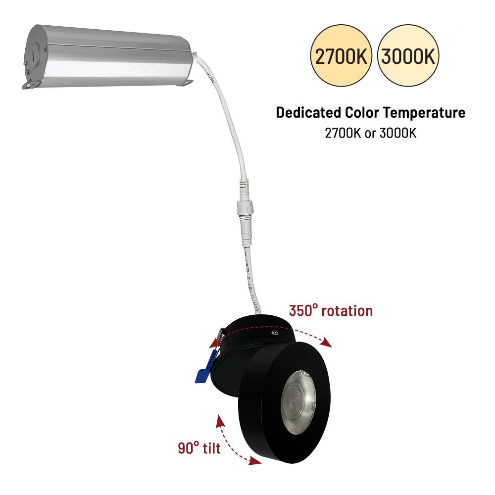 2" M-Wave Can-less Adjustable LED Downlight, 2700K, Black finish