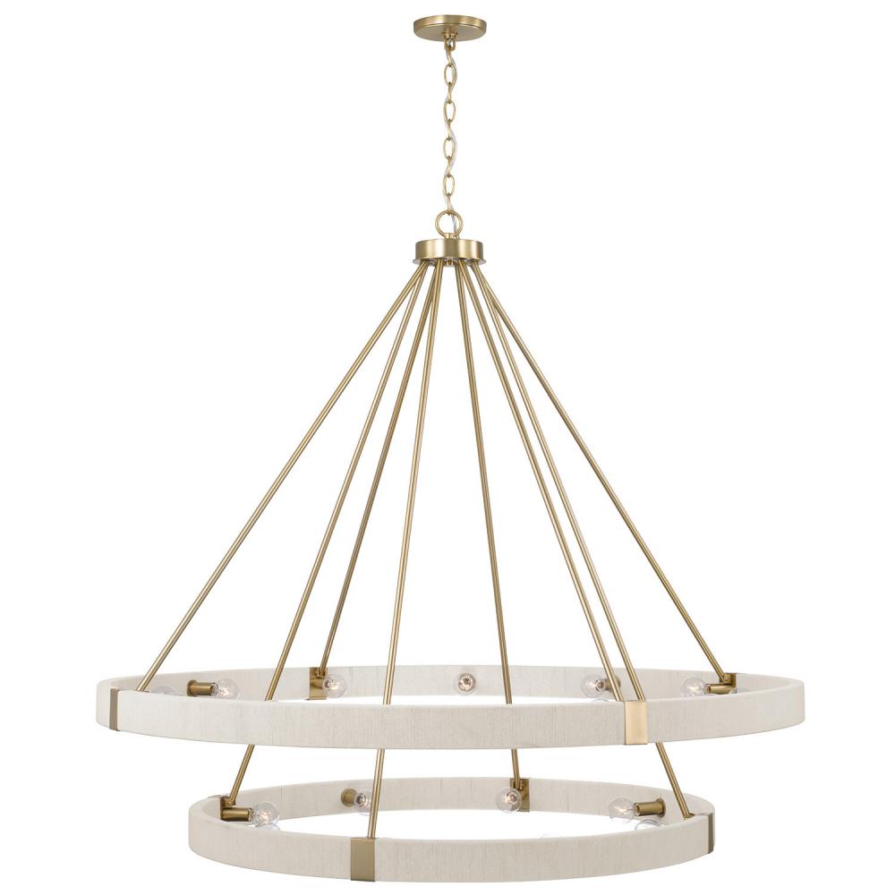 Casual chic meets all-around luxury with the Delaney Two-Tier Chandelier. Crafted in a double ring silhouette, the hand-wrapped Bleached Natural Rope adds soft dimension to the warm Matte Brass finish, bringing elevated designer style to any space.