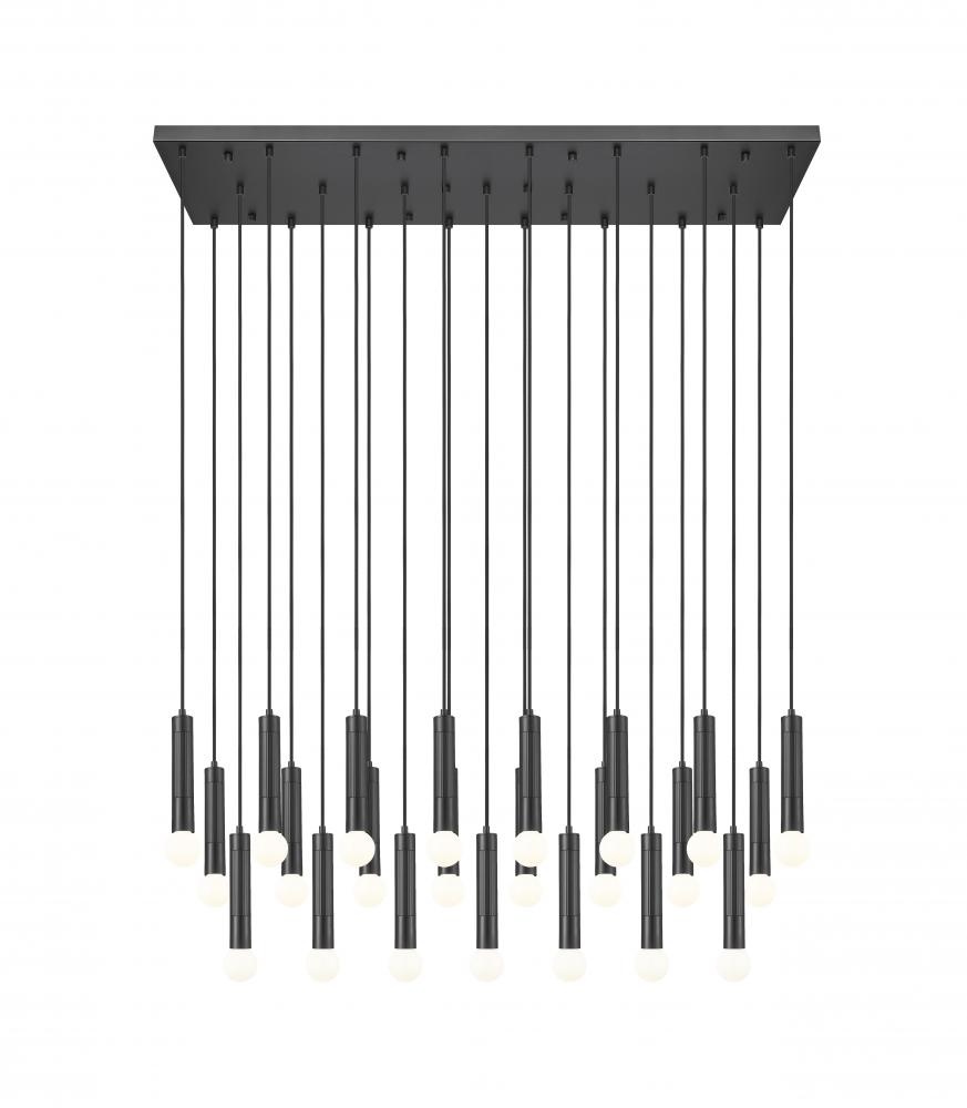 the striking contrast of a matte black finish against a white ceiling ensures bold style for this modern 23-light linear chandelier. With a tiered design and braided cords that descend from a rectangular canopy, it sets a sophisticated tone with elongated tubes that host petite lights for excellent ambiance and illumination. Choose this fixture for a bold statement in your entry or dining room.
