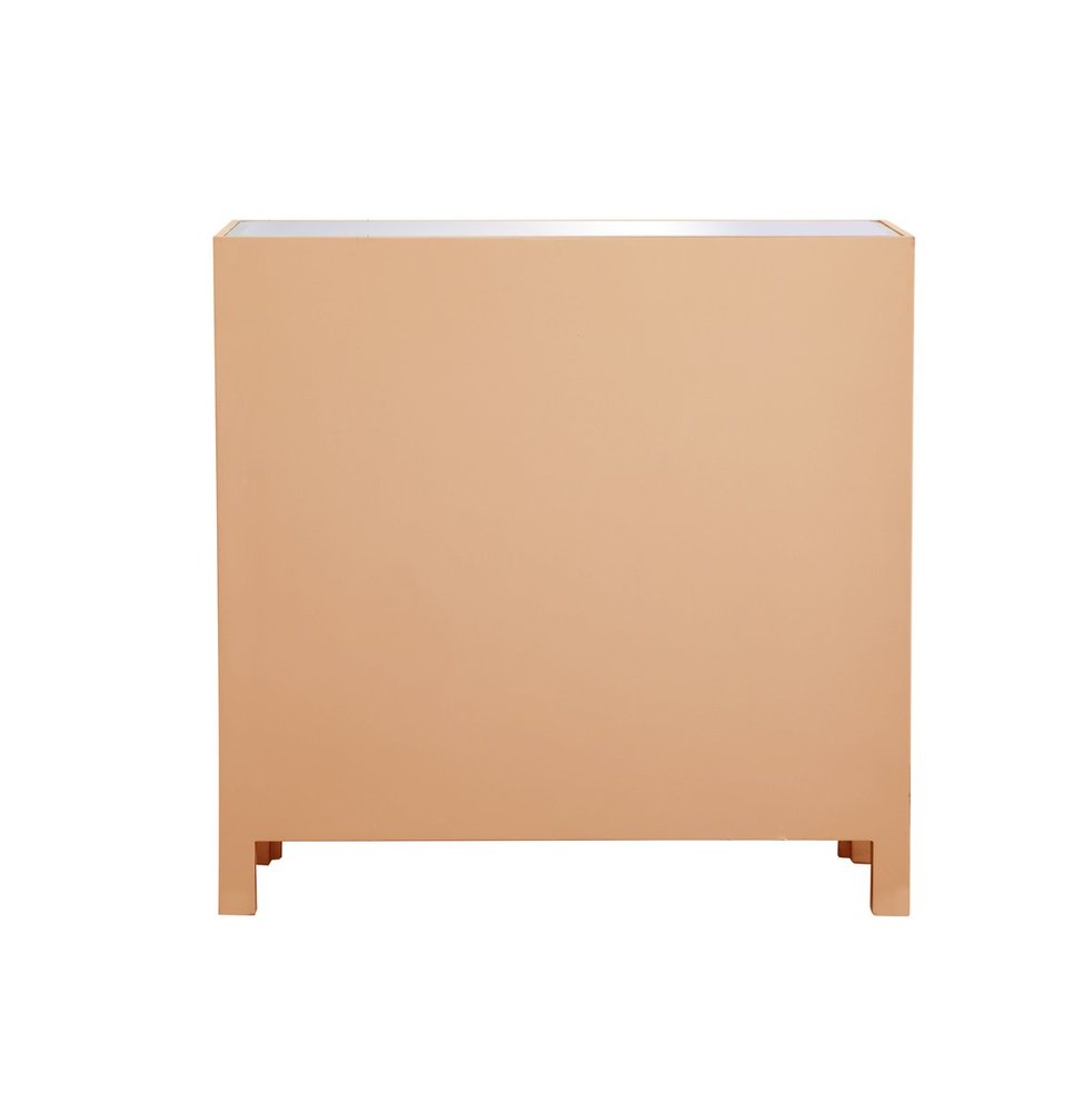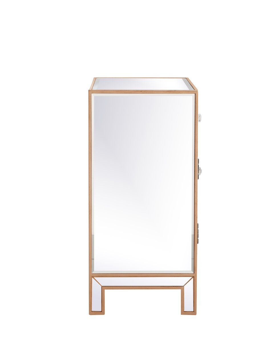 A perfect balance of contemporary style and practical utility, this chic one drawer, two doors mirror cabinet will enhance any room in your home. Featuring a hand painted gold finish, top quality mirror panels in distinctive mitered corner, jewel like crystal door knobs, it will provide you with stylish storage space you often need.