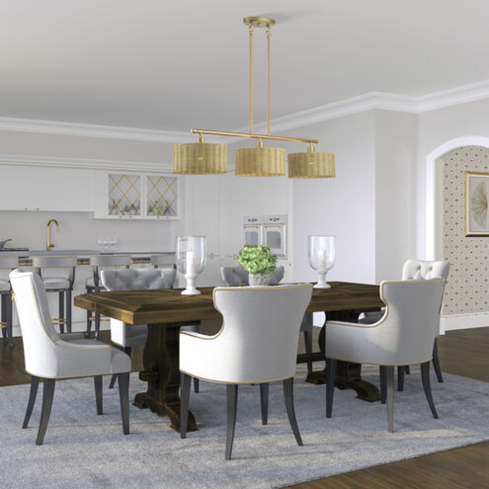 3 Light Antique Gold Leaf Extra Large Linear Chandelier