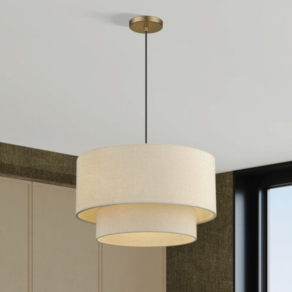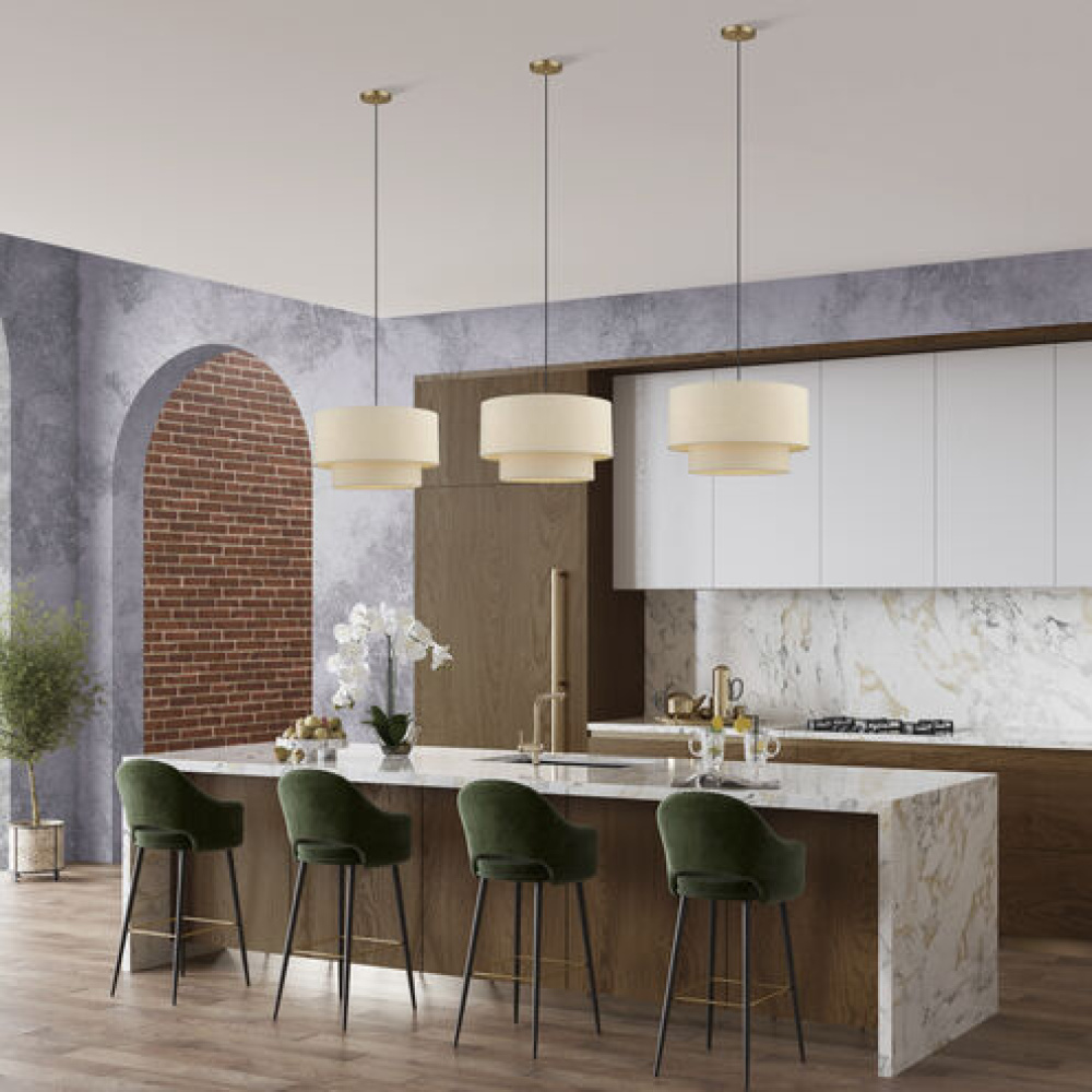 If you love the minimalist, natural aesthetic of mid-century modern design, you’ll adore the organic colors and the phenomenal illumination of the timeless Bellingham lighting collection. Stacked in double- and triple-tiered “wedding cake” style, the handcrafted hardback drum shades are completely finished with a soothing parchment color fabric, radiating warm, earthy ambient lighting. This versatile collection features an array of linear and pendant chandeliers, semi-flush mounts, ADA wall sconces and even a delightful little swing-arm wall lamp.