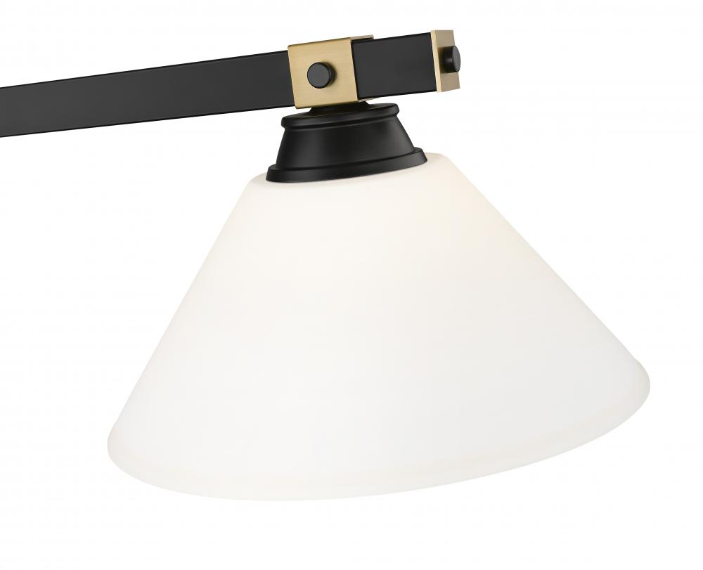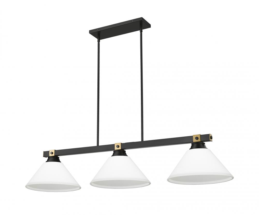 Brass details bring the perfect hint of warmth and sophistication to this modern three-light linear billiards pendant. Perfect for gaming and dining tables or kitchen islands, its elongated profile features a matte black finish that pairs perfectly with soft white shades for a clean, precise look.