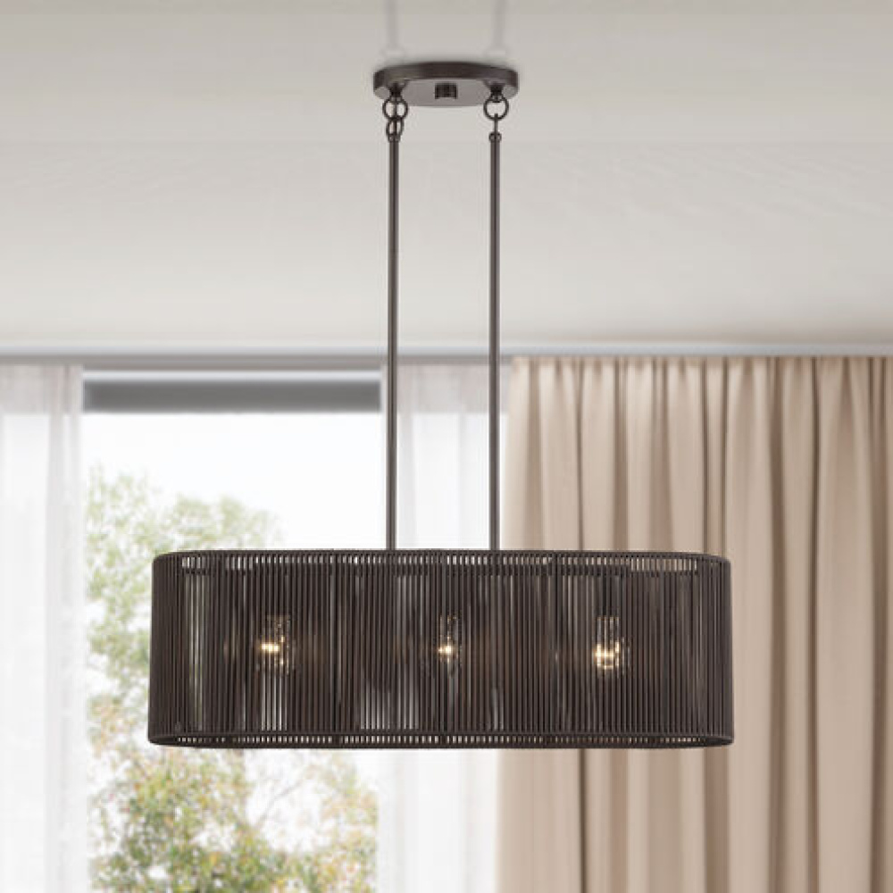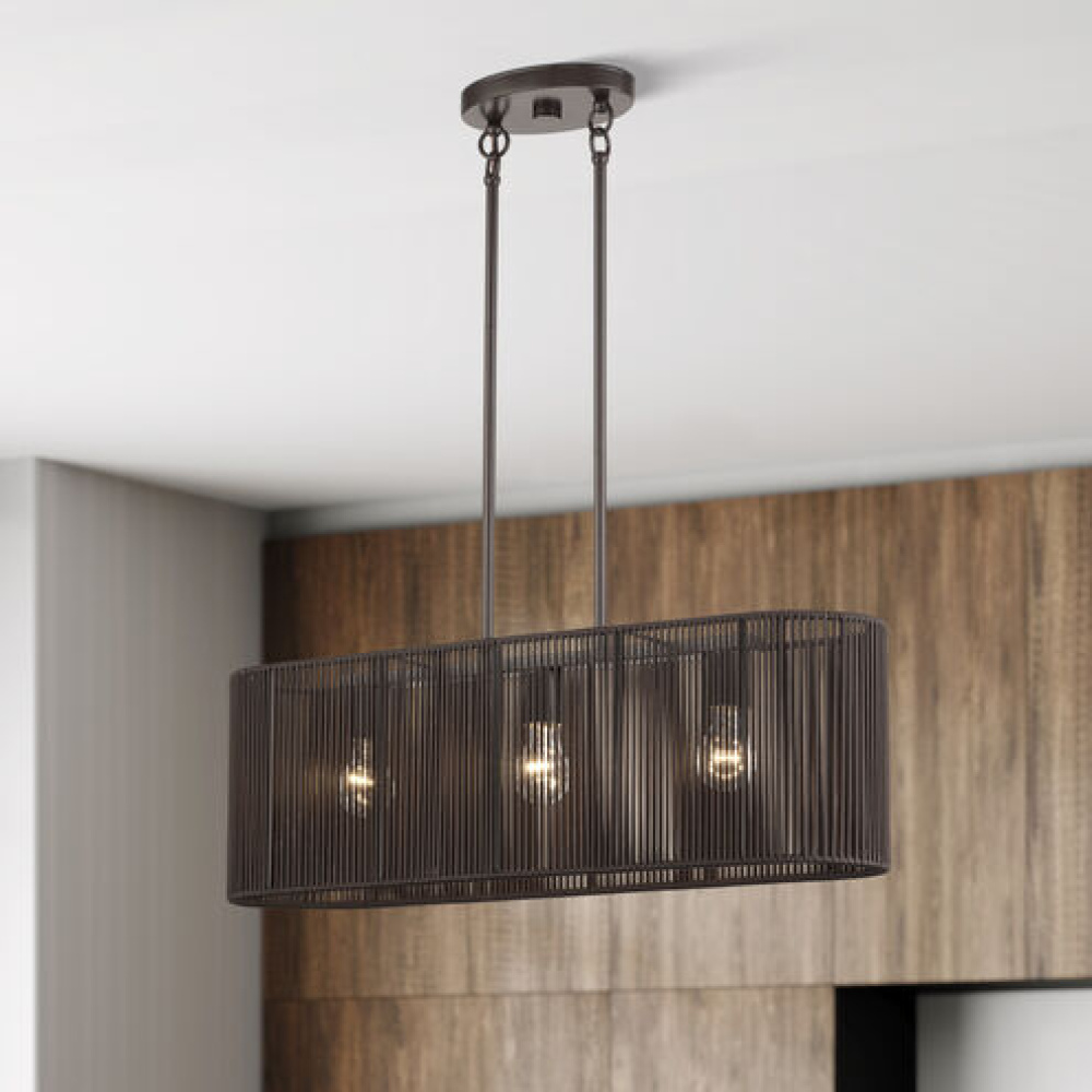 3 Light English Bronze Medium Linear Chandelier