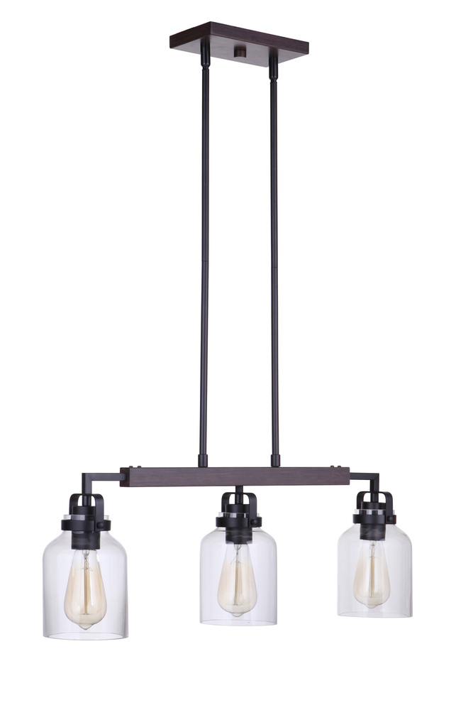 Foxwood 3 Light Island in Flat Black / Dark Teak
