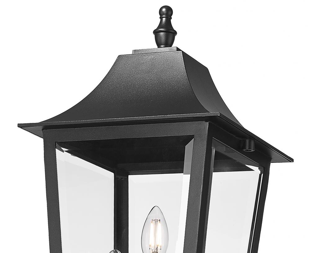 Tall and refined, this traditional three-light outdoor post light creates a bright, inviting touch for your landscaping. It?s the perfect solution for large homes, offering grand scale and inviting simplicity of design. A durable Coastal black finish pairs with clear beveled glass for excellent illumination.