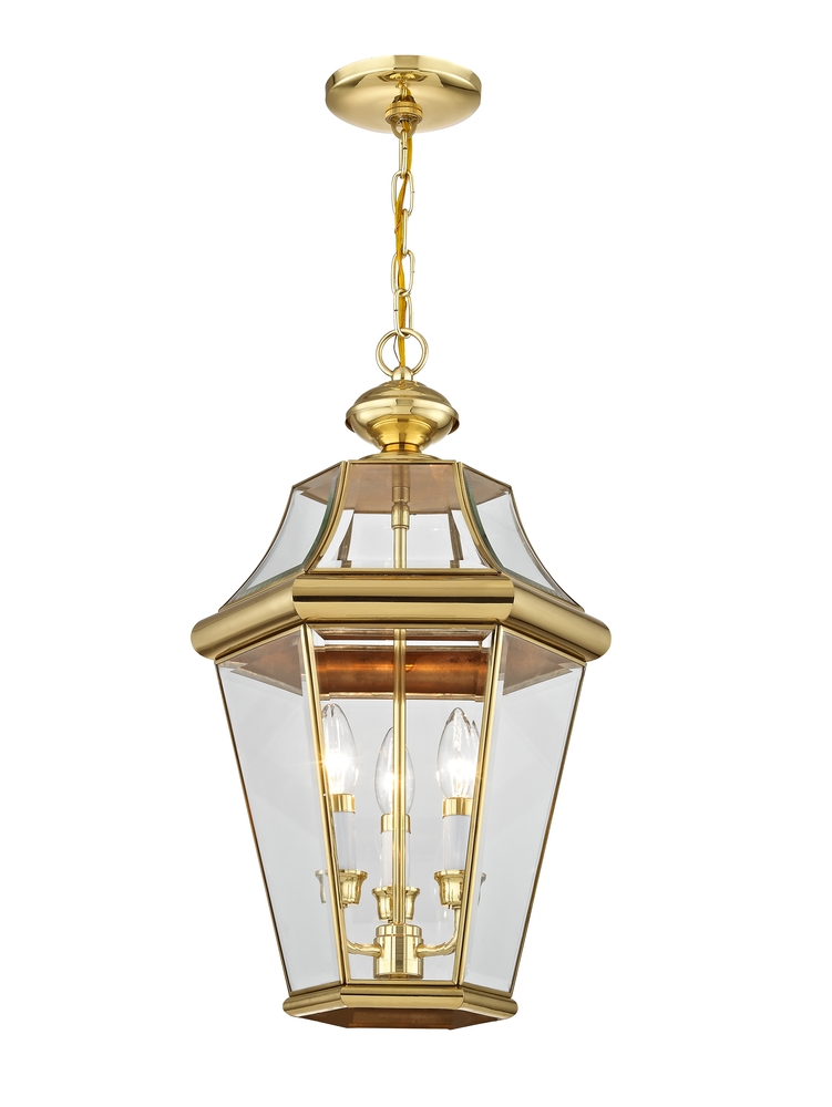 Livex Lighting 2365-02 - 3 Light PB Outdoor Chain Lantern