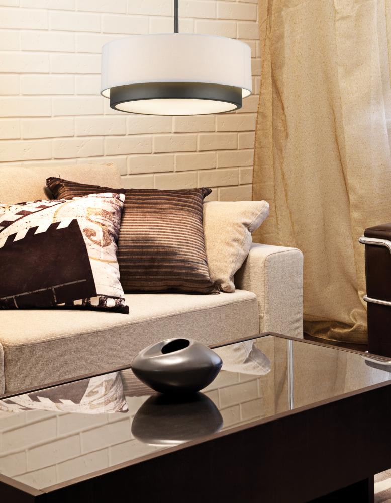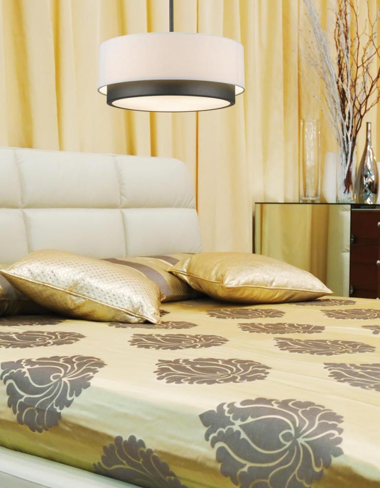 A white linen cylindrical drum shade defines this elegant pendant, as does its complimentary factory bronze hardware. This fixture is sure to add contemporary class to any space.