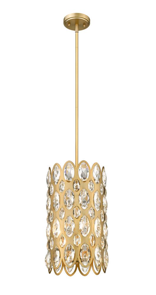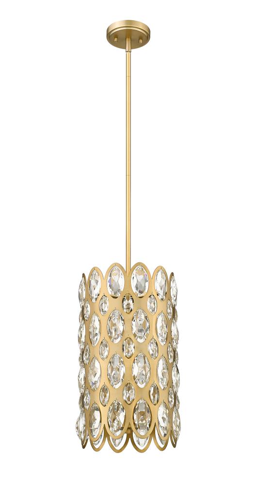 Introduce a sparkling touch to sophisticated decor with this modern glam three-light pendant. Its drum shade sports a rich and warm heirloom brass finish paired with oval cutouts. Each cutout hosts an oval crystal that sparkles in the light to cast a compelling ambiance over your kitchen, bedroom or powder room.
