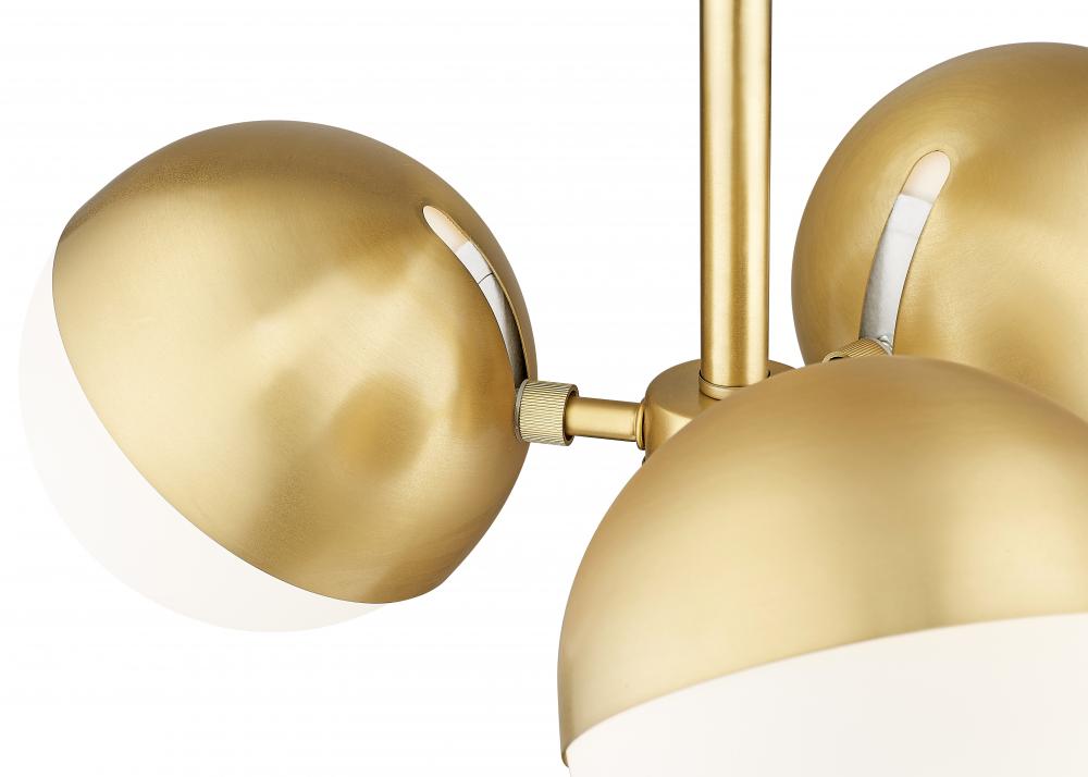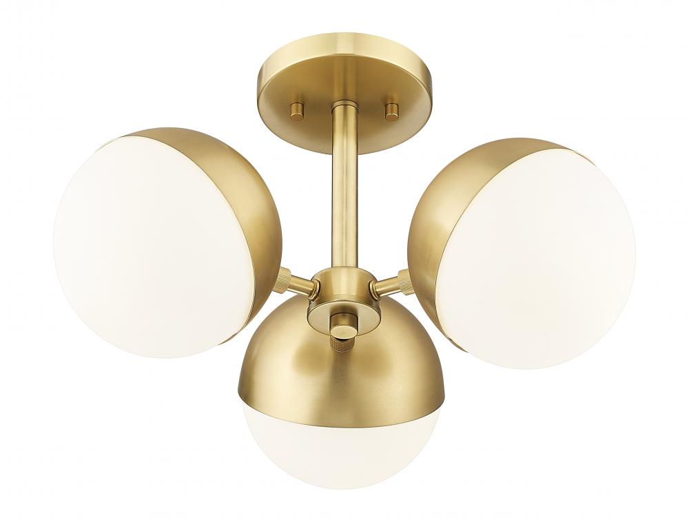 A modern gold finish reinforces the vintage design inspirations of this three-light semi-flushmount ceiling light. Casting multidirectional illumination, it pairs opal glass orbs with moveable metal shields to create a custom look and feel in your bedroom or home office.