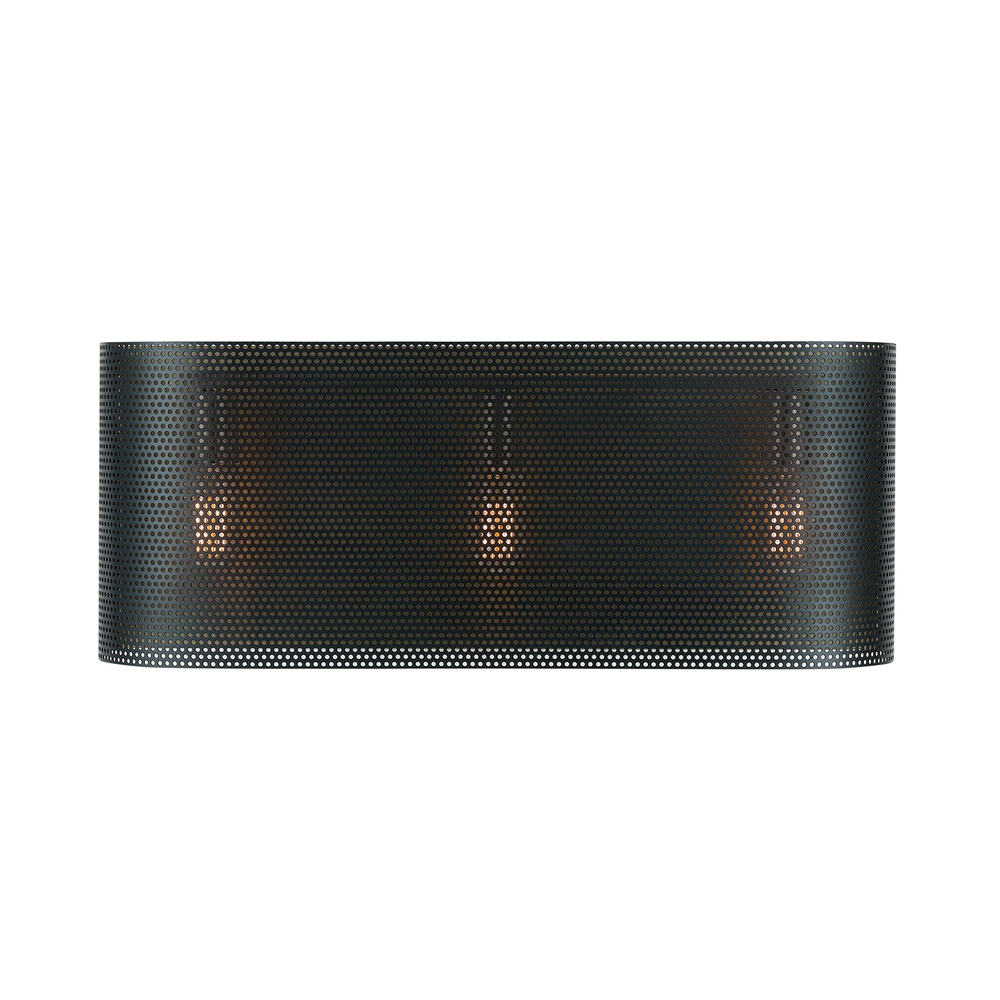 3 light vanity with Aged Brass and Black finish and Perforated Metal shade.