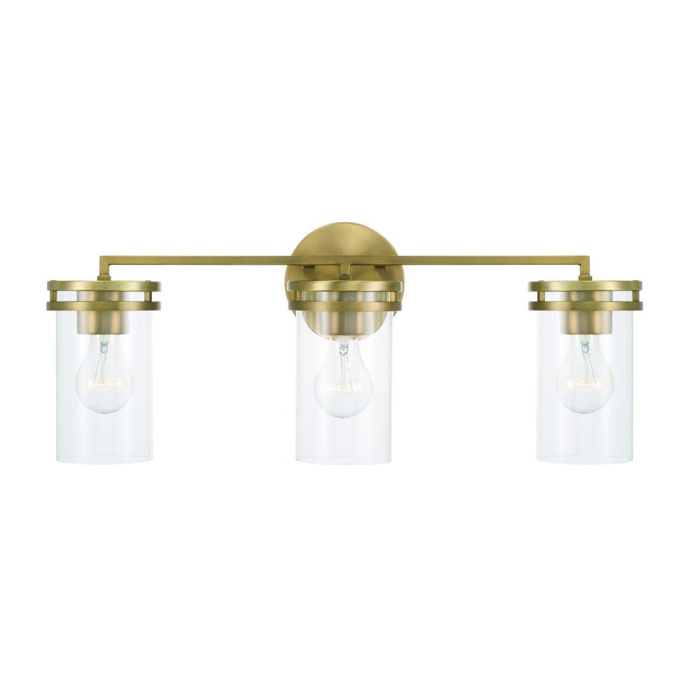 24"W x 9.75"H 3-Light Vanity in Aged Brass with Clear Glass