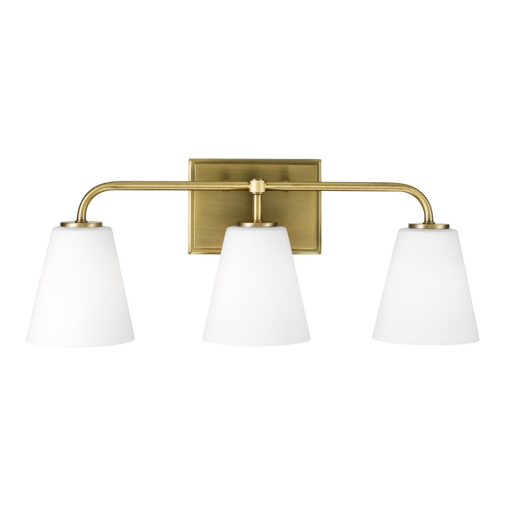 23.5"W x 9"H 3-Light Vanity in Aged Brass with Soft White Glass