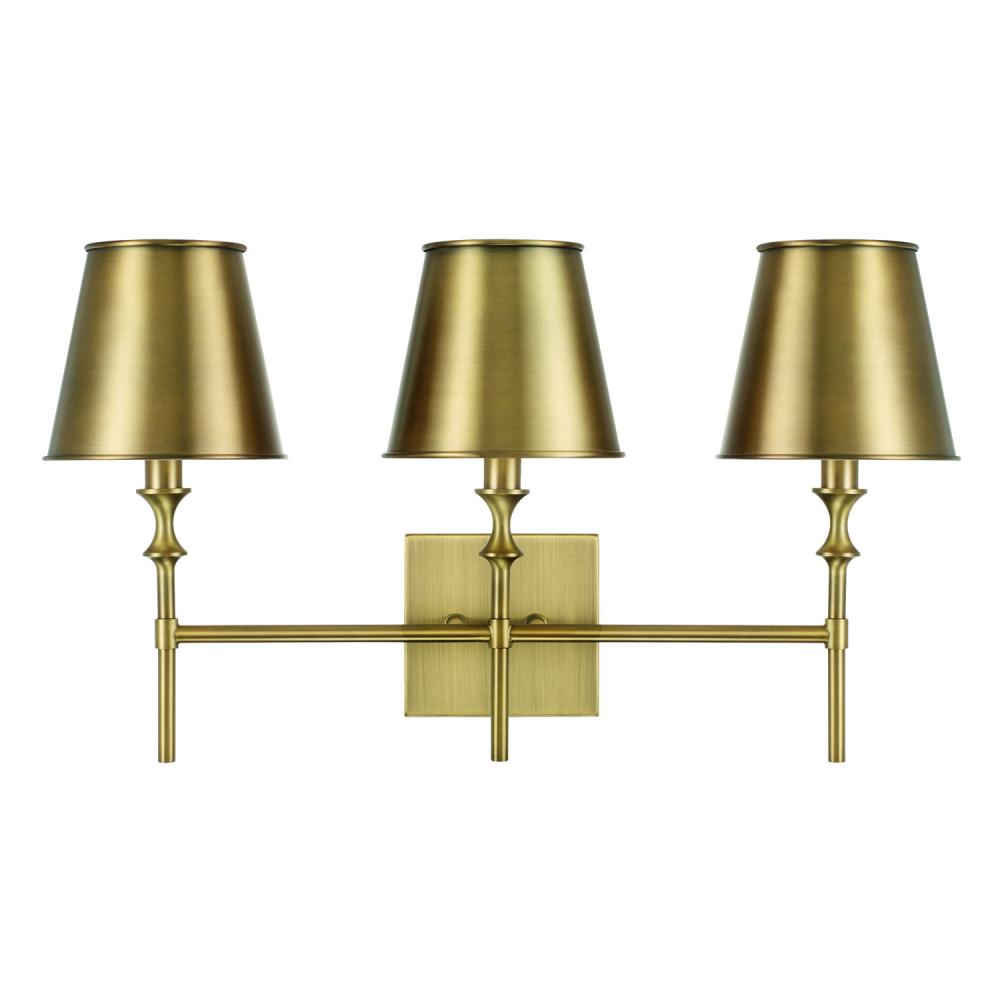 24"W x 13.25"H 3-Light Vanity in Aged Brass with White Metal Shade Interior