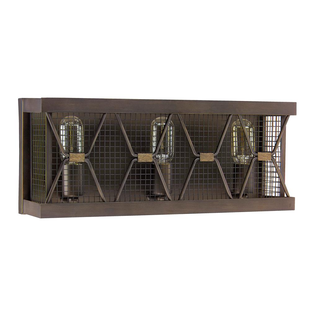 Illuminate a classic bath in chic, industrial style with our Jackson 3-light vanity fixture. It's a model combination of modern style and rustic charm with its timeless Oil Rubbed Bronze finish, perfectly accented by today's trend-setting vintage-style bulbs.