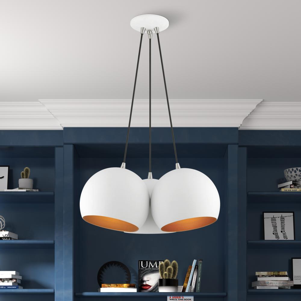 3 Light White Globe Pendant