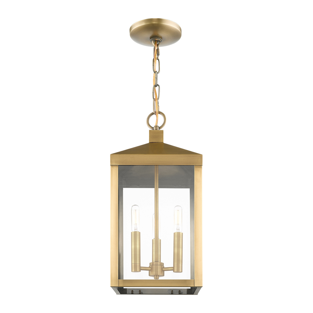 3 Lt Antique Brass Outdoor Pendant Lantern