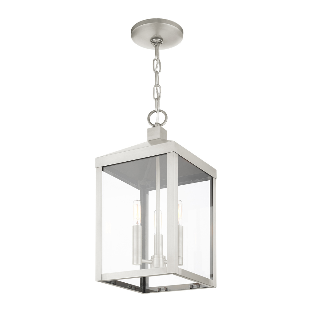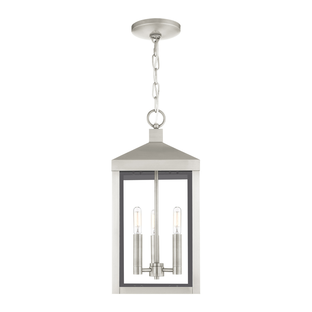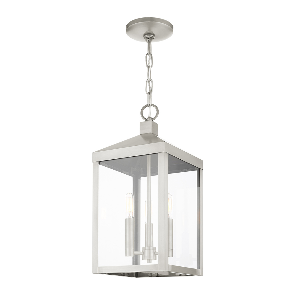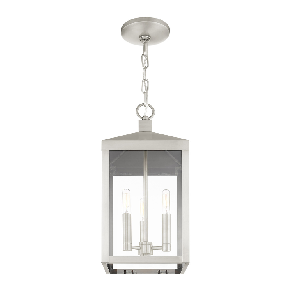 3 Lt Brushed Nickel Outdoor Pendant Lantern