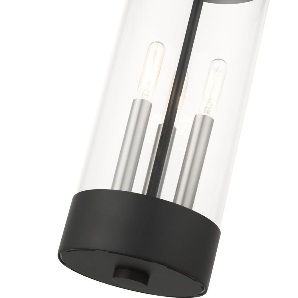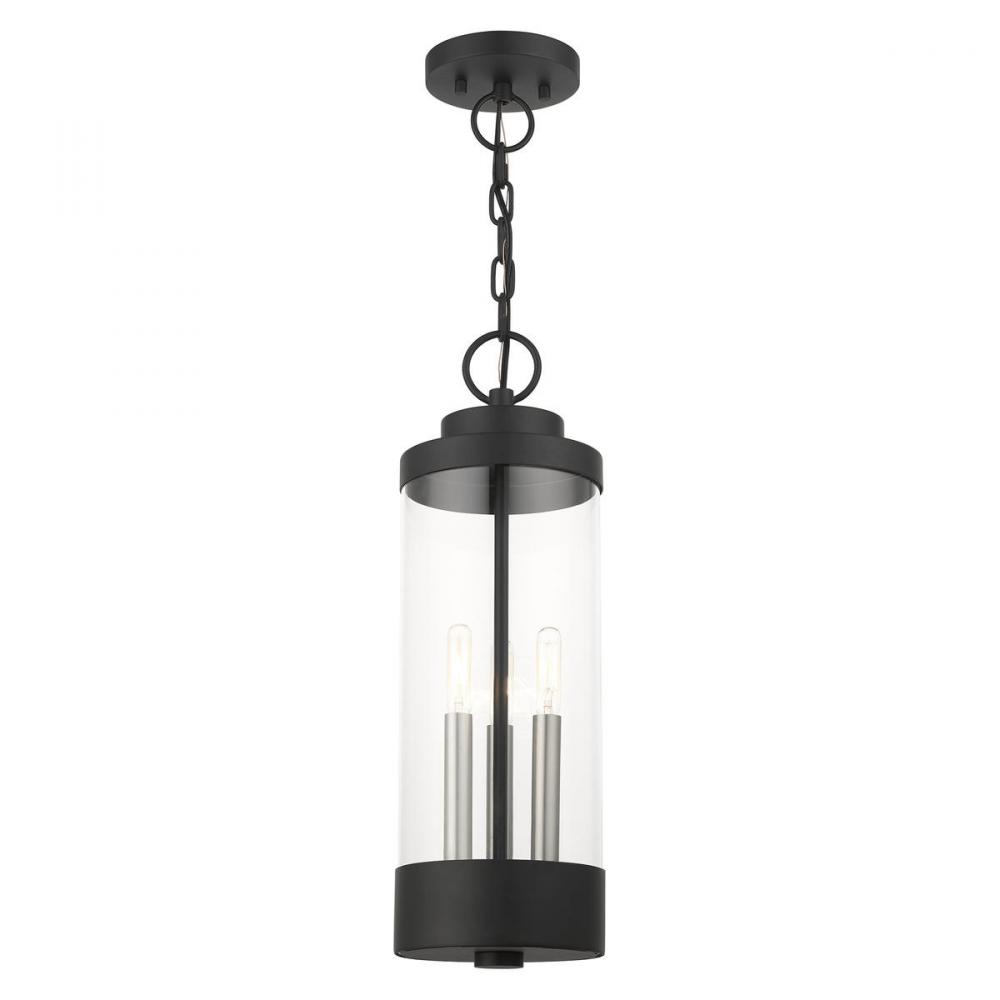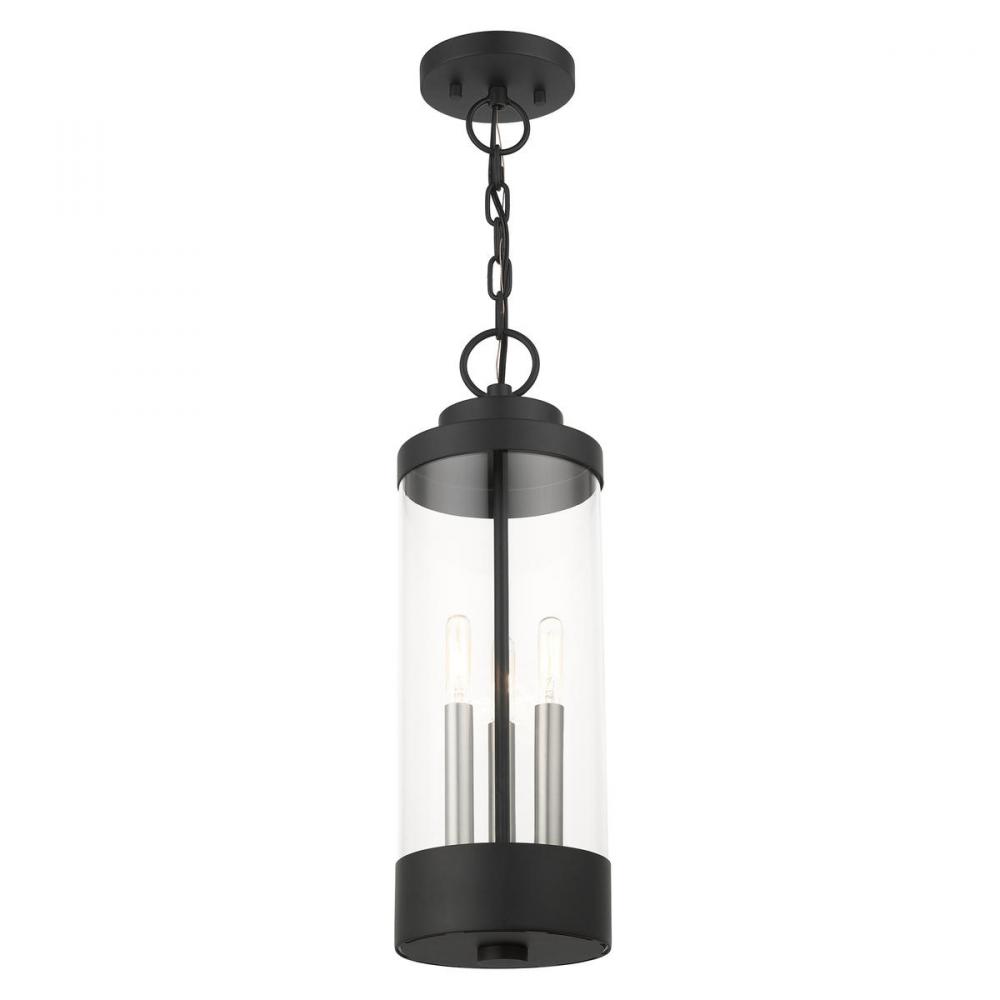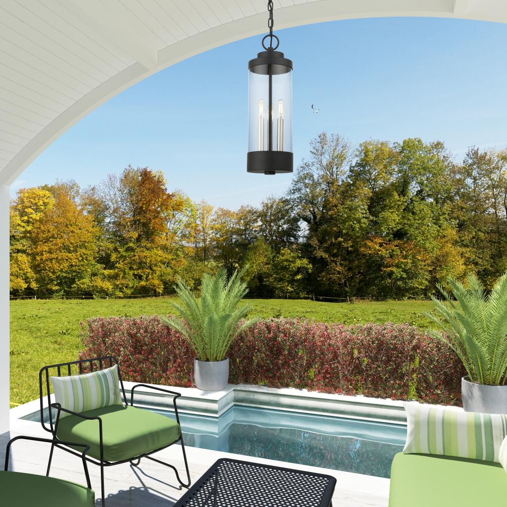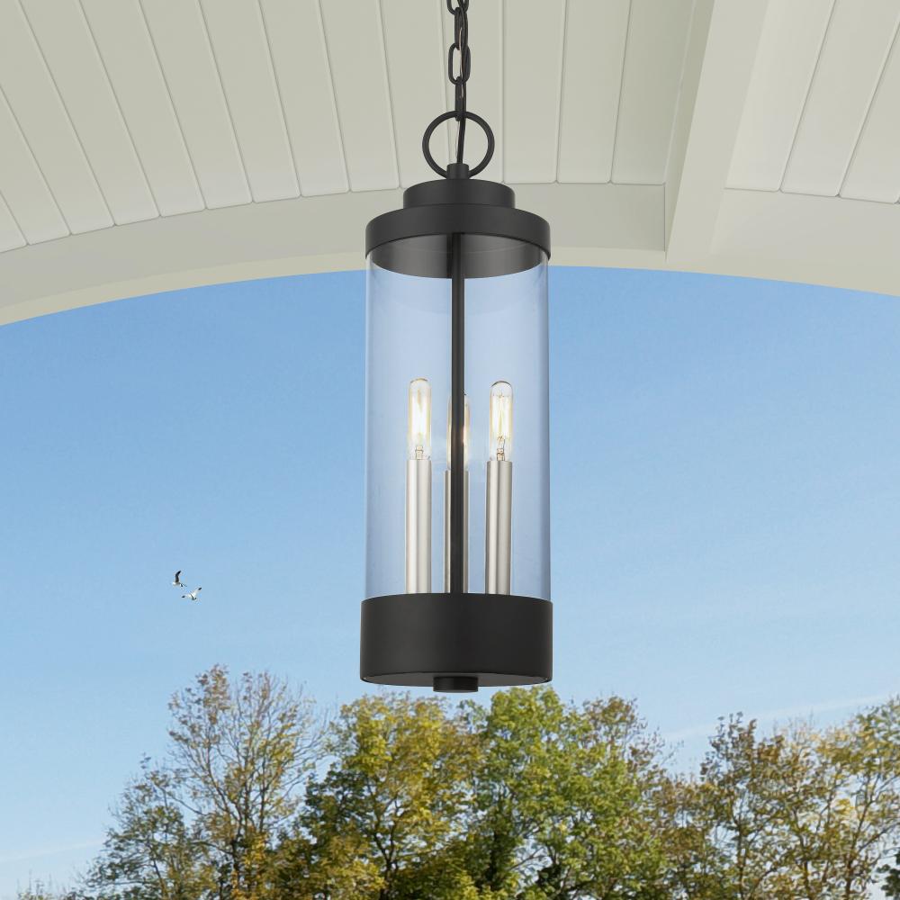 3 Lt Textured Black Outdoor Pendant Lantern