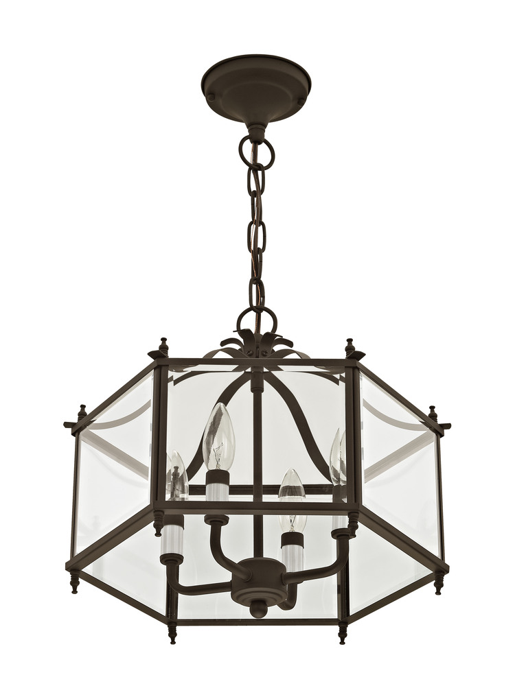 The Livingston Collection Features A Classic Six-Sided Lantern Silhouette. Bronze Finish With Clear Beveled Glass Gives The Fixture Charming Style And The Candelabra Bulbs Will Fill Your Home With Generous Amounts Of Illumination That Welcomes Your Guests. The Versatile Ixture Can Be Transformed Into Semi-Flush Ceiling Mounts.