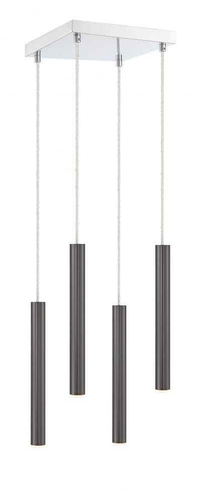Sleek and clean lines from this four-light pendant light add sophistication to any bathroom or hallway. Radiate with a reflective pearl black finish and elongated lines.