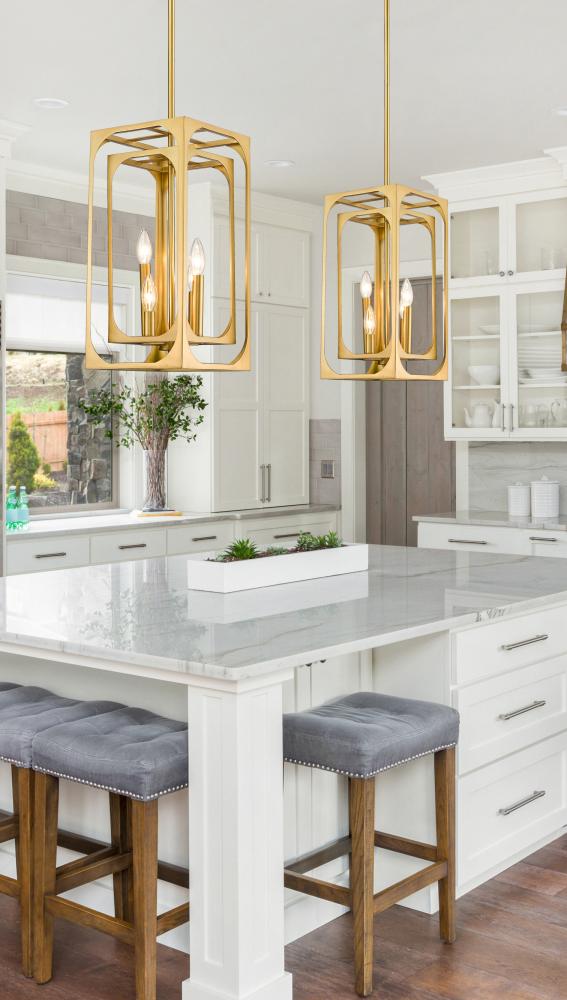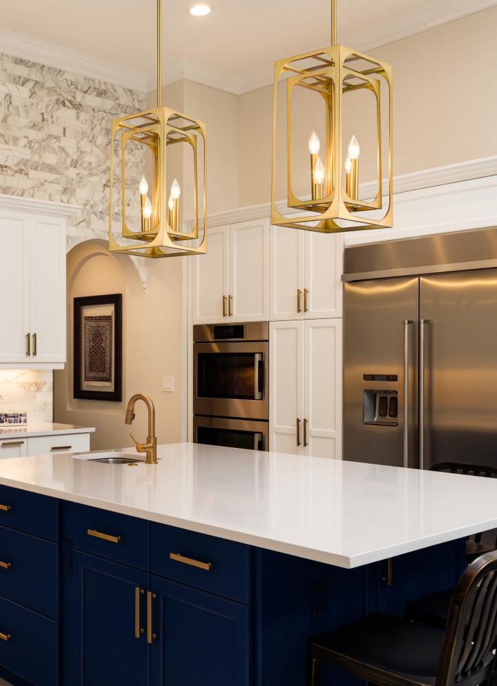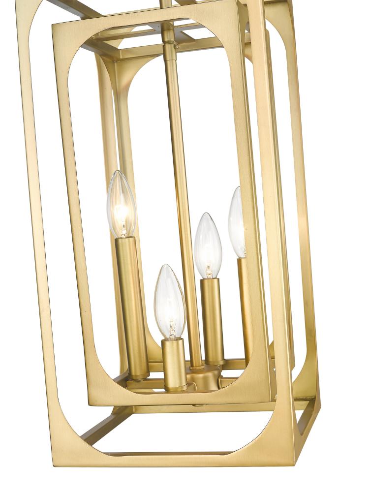 Visual impact follows a striking geometric silhouette perfect for blending modern farmhouse with industrial styles. The Easton metal four-light chandelier creates a mixed motif with candelabra bulb mounts set in a graduated arrangement, centered in full view thanks to a dual-layered openwork rubbed brass finish metal frame. A chic version of minimalism reflects with a sought-after effect, accomplishing its objective with an extraordinary blend of a warm palette and minimalist construction.