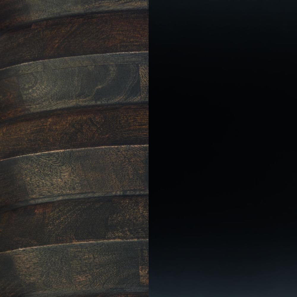 FINISH: A smooth, mixed material finish of natural mango wood with a dark brown stain and a neutral, dark, flat black metal.