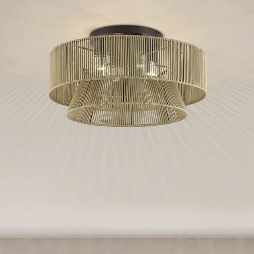 Laidback yet disciplined, the midcentury modern Florell lighting collection celebrates all versions of You: from “beach-haired weekender” to “visionary CEO”. with a vast selection in dramatic colors, this boho-inspired design features minimalist metal frames supporting drum-shaped, tapered and tiered shades – beautifully hand-threaded with sleek (fade- and fray-resistant) polyester rope. Semi-transparent texture allows for creating nuanced shadowing effects.