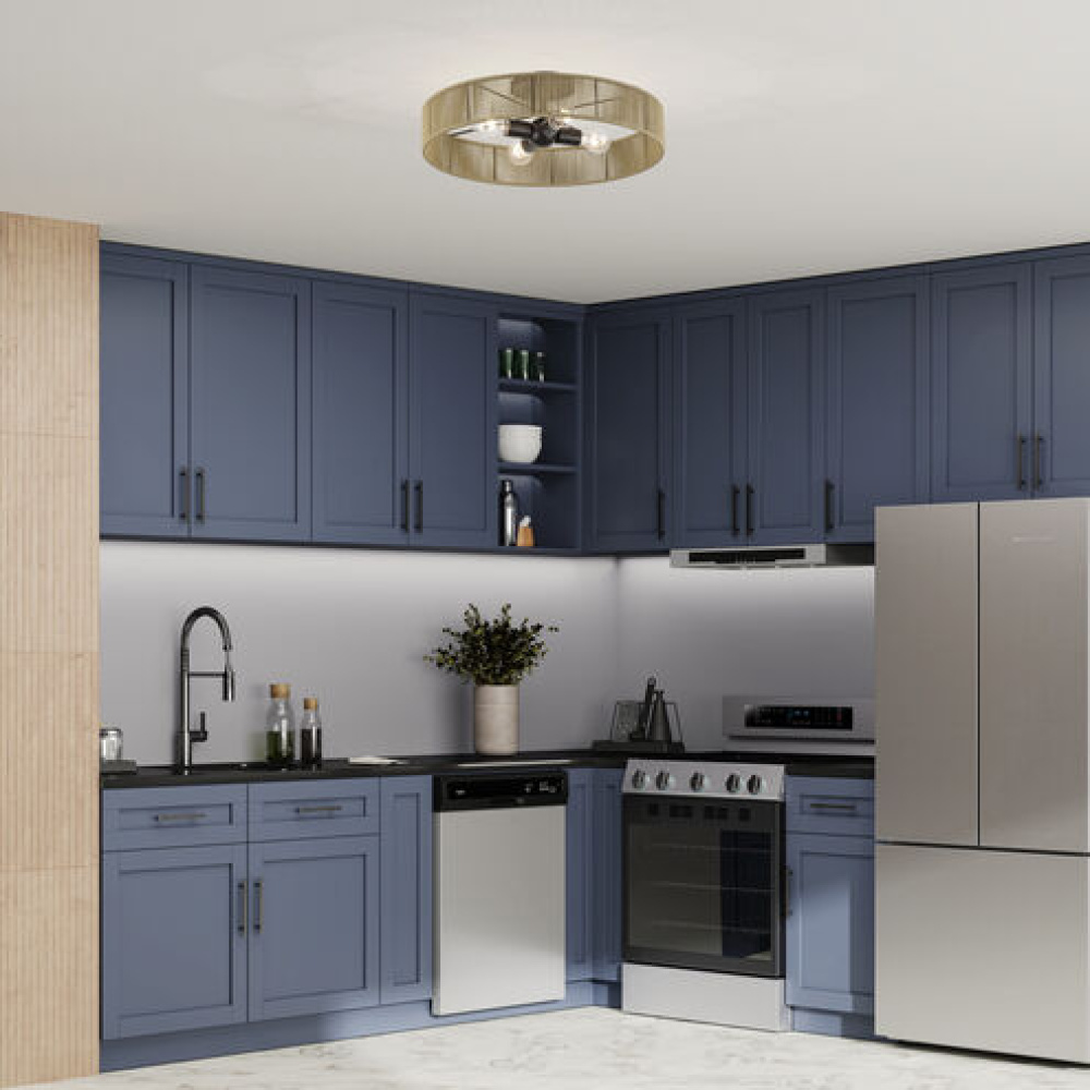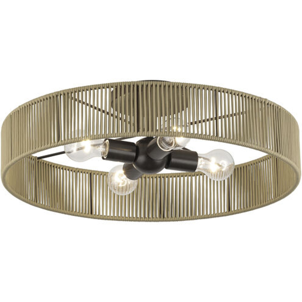 Poised yet fun, the versatile Goldiemesh lighting collection brings elegance, dimensionality and rich, golden radiance to midcentury modern interiors. This boho-inspired design features minimalist metal frames (in contemporary metallic finishes) supporting thin, wide drum shades artfully hand-strung with polyester rope silky-smooth, durable, fade- and fray-resistant synthetic fiber, available in brightening and atmospheric colors.