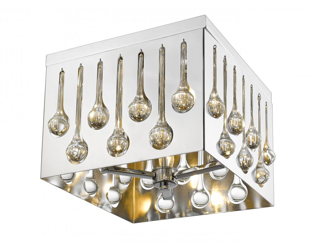 Add to the elegance of an upscale modern space with this four-light flush mount fixture. Gorgeous chrome finish steel offers a beautiful venue for petite crystal droplets and contributes to a metropolitan design scheme in a living room or walkway.