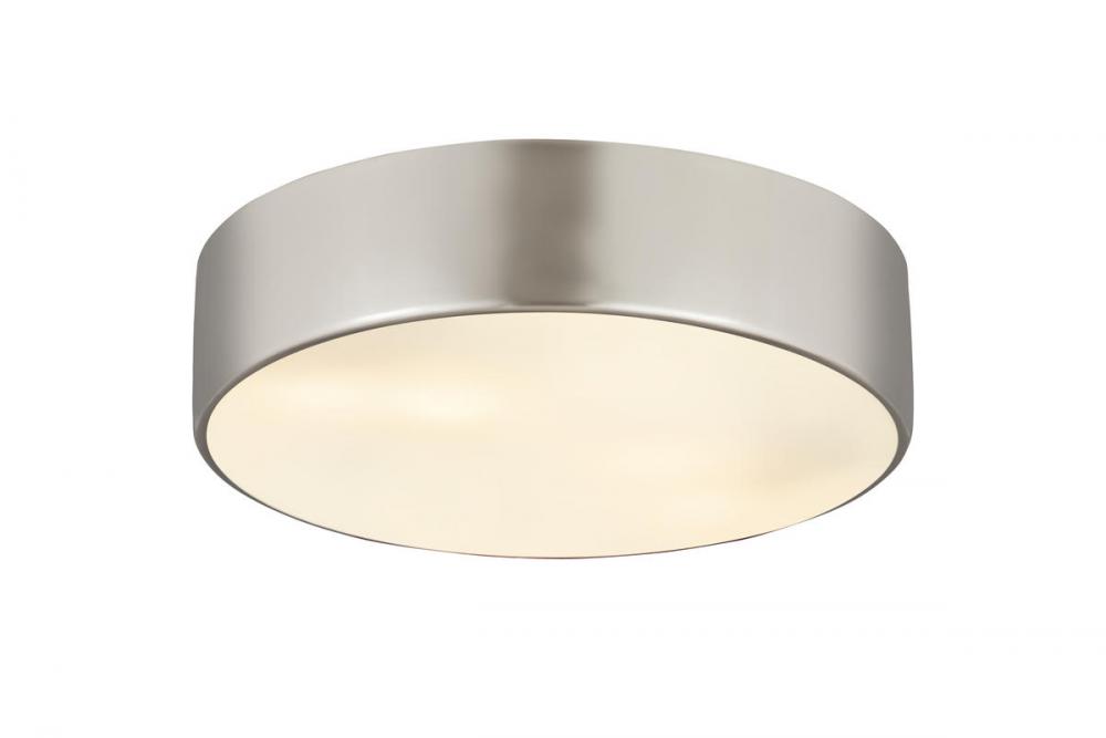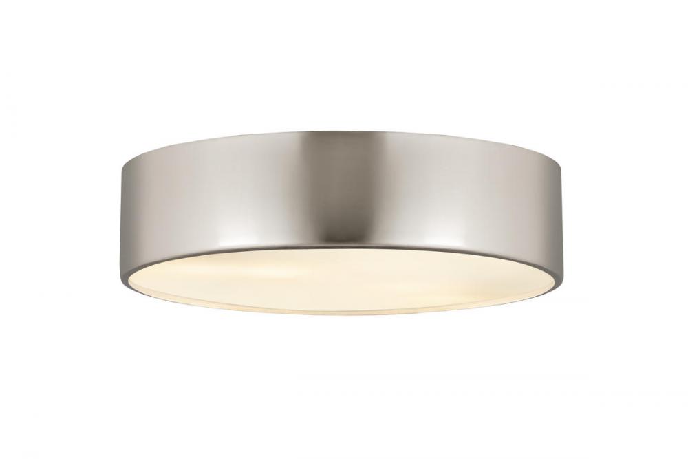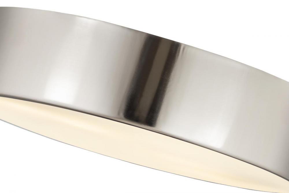 Take a page from casual style by illuminating a modern space with the Harley flushmount metal drum ceiling light. This four-light ceiling light offers plenty of lighting in a kitchen, dining area, or main living space, maintaining an easy style. With a sleek brushed nickel finish steel shade, it?s versatile and dynamic.