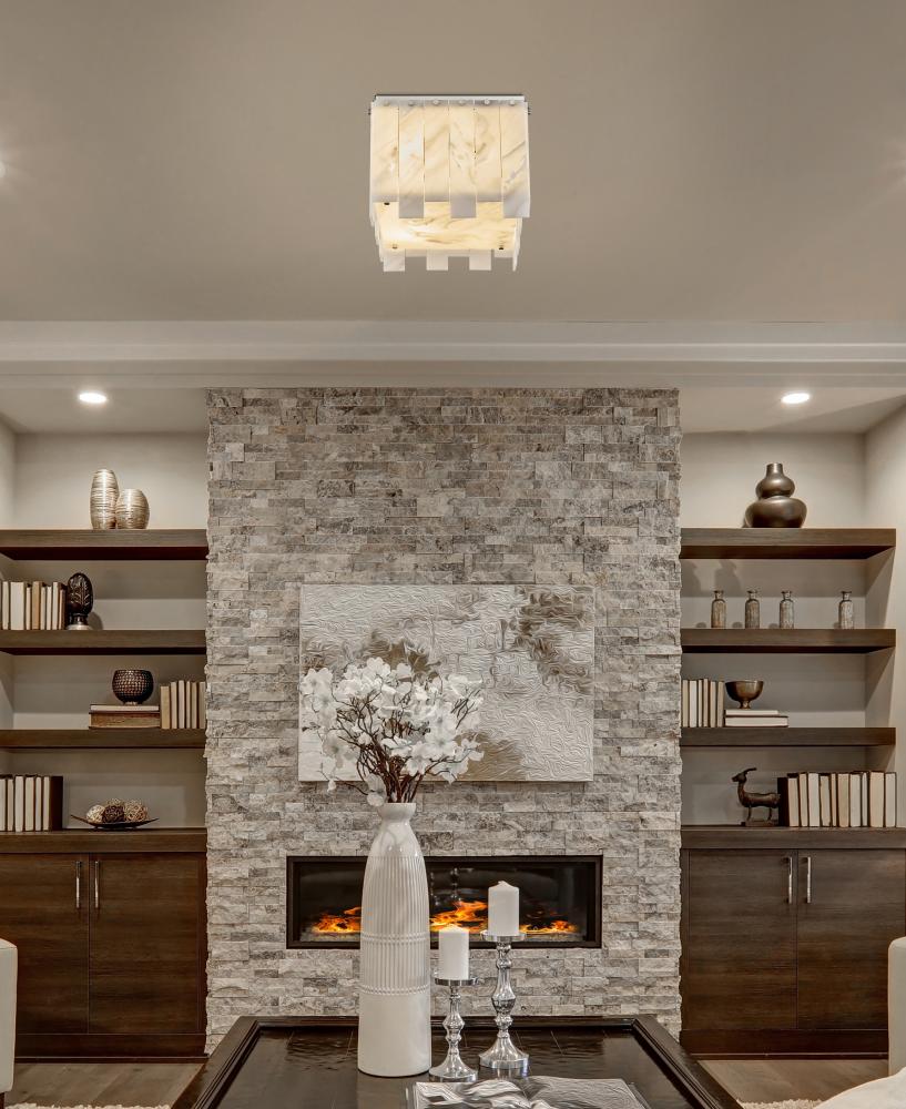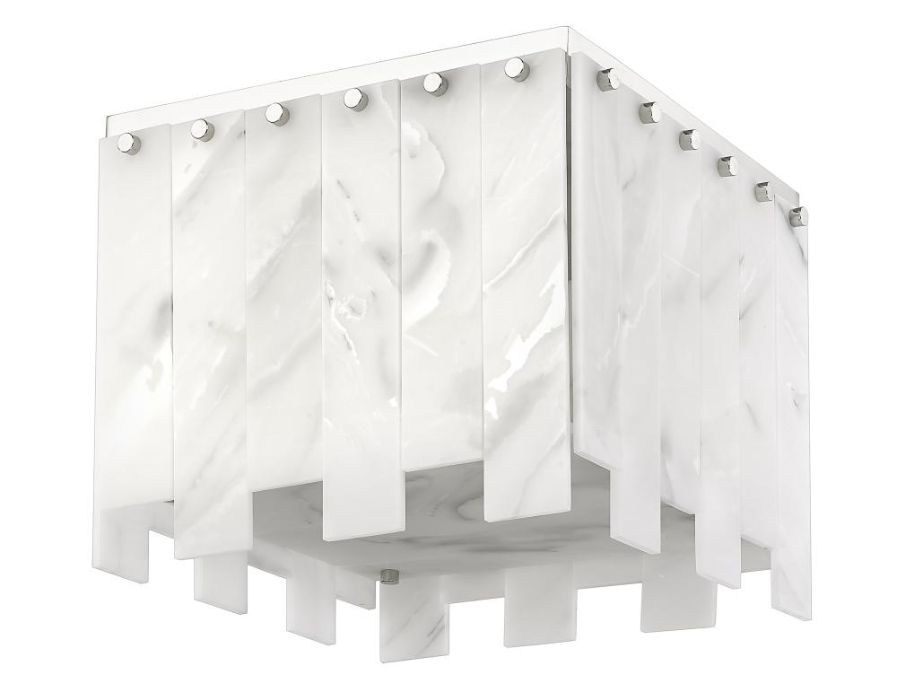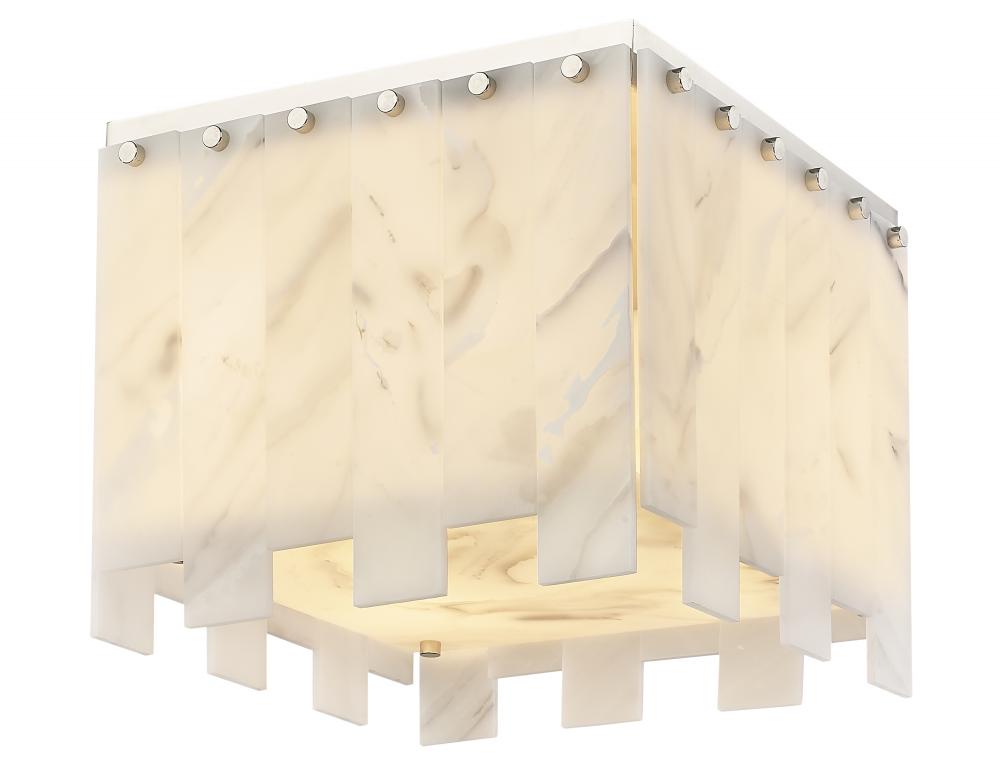 Artistry goes Art Deco in personality and adds an inspired gallery feel with a light fixture that becomes a focal point. This four-light flush mount ceiling light from the Viviana collection creates impact with alabaster-like strips alternating in length and arranged around a square polished nickel finish steel frame. Dressed up with whimsical rivot detailing, this flush mount light goes with the flow as it complements a gritty rendition of toned-down glam in a kitchen or entryway.