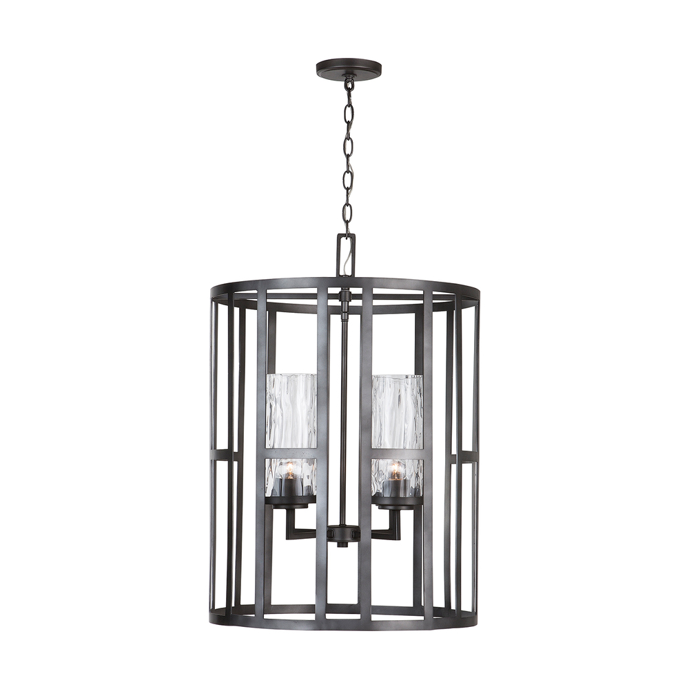 4 light foyer with Midnight Grey finish and Clear Water glass.