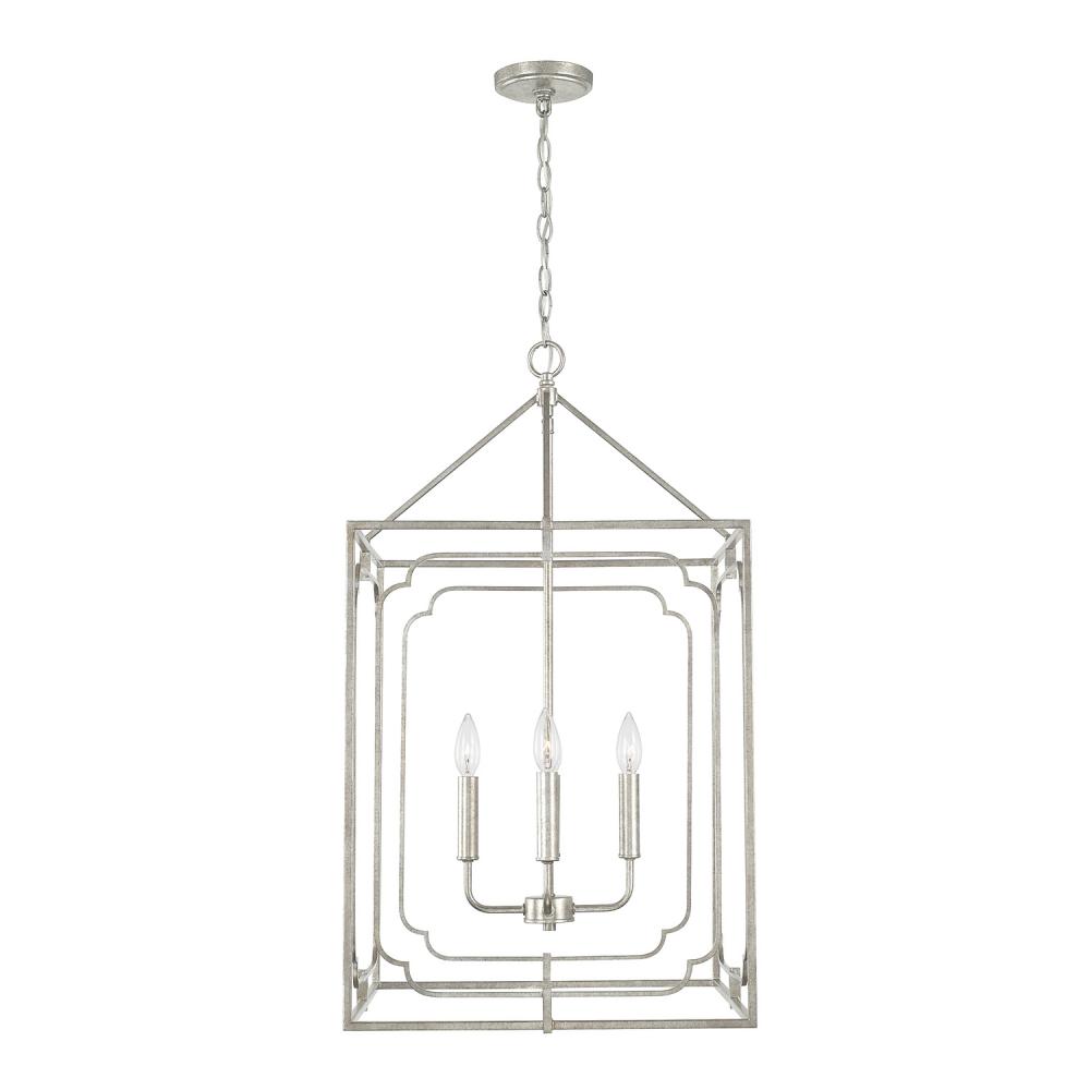 A simple, bold frame holds the delicate, sophisticated quatrefoil-inspired pattern of the Merrick 4-Light Foyer. The Antique Silver finish adds a touch of character and elegance to the lantern design.